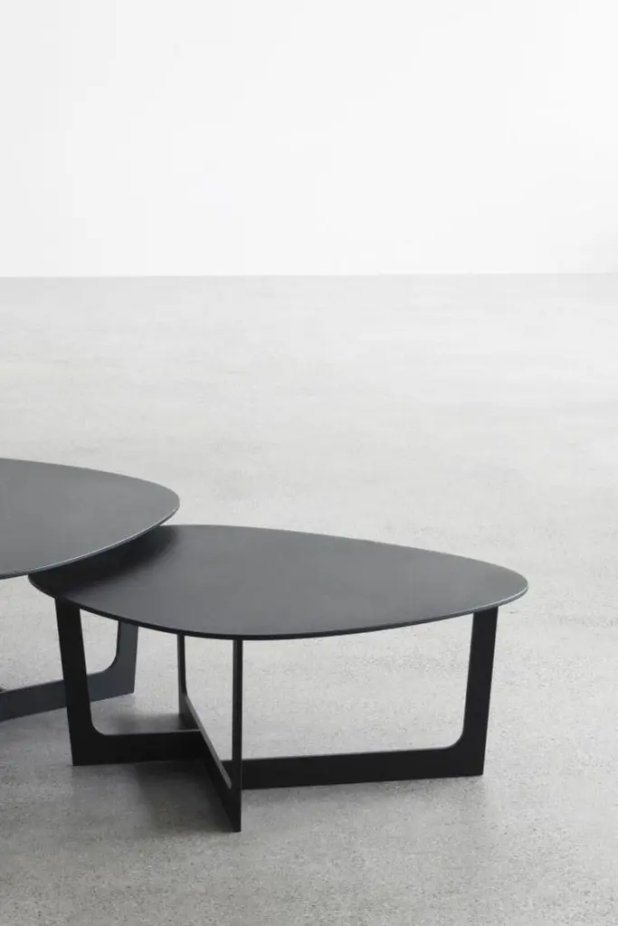 The asymmetrical, yet balanced shape of the table top is balanced by the streamlined definition seen in the slim table top and angular frame. Almost like small islands, the tables have a floating feeling.Coffee table in solid aluminum finished with textured powder coating. Mounted withplastic glides. Delivered unassembled.Dimensions: Width : 76cm , Depth : 72cm , Height : 30cmWeight : 10 kgsDesigners : Mette Bartholin-Jensen and Morten ErnstDesign year : 2009Meet the designerMorten Ernst and Anne-Mette Jensen have garnered international acclaim for their inventive angle on design. Most notably, symmetrical forms that find a perfect balance. Organic yet graphic shapes. And unconventional concepts that question the status quo. Adding a playful dimension as part of their reputation as exponents of contemporary Danish design.