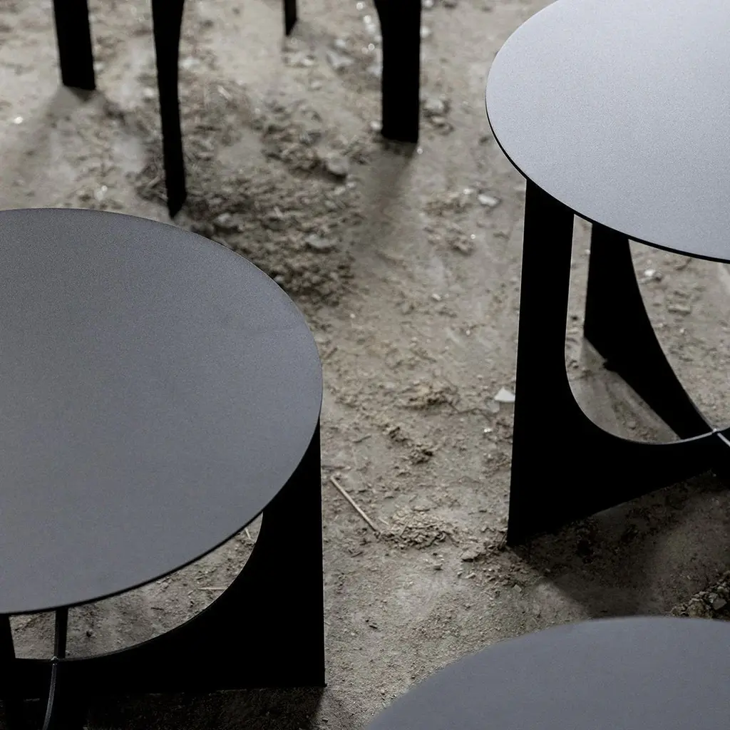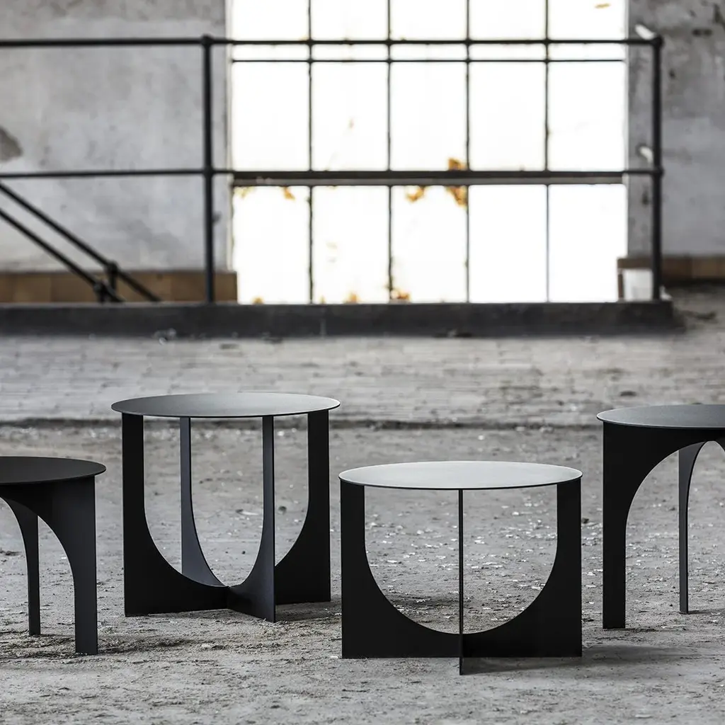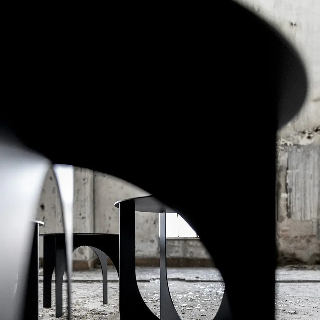 The table's delicate table top and legs contrast with the experience of heaviness, stability and durability that hits you when you feel the quality of the material. Inverse is designed by the recognized Danish design duo Steffensen & Würtz who elegantly manages to form a bridge between the table's paper thin profile and the heavy weight of solid steel. Inverse is available in two variants, each being each other's inverted twin. Both variants are available in two sizes – in total four different coffee tables.
