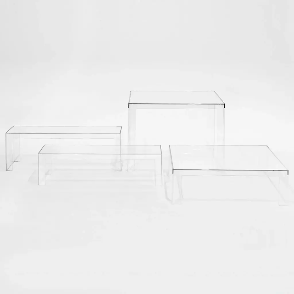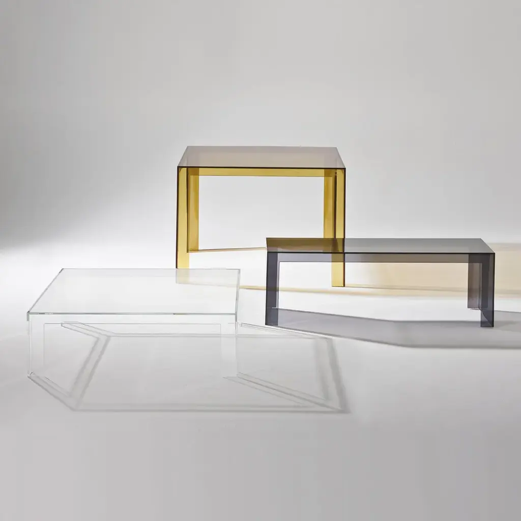 Kartell adds a new item to its catalogue and succeeds in producing that piece of furniture that was missing and that everyone was clamouring for: the first single mould transparent table made of plastic with a square top. Invisible Table designed by Tokujin Yoshioka combines lightness and solidity, grace and elegance and practicality and style. Its simplicity and purity of form makes it adaptable to any environment. Its sophisticated palette of colours ranging from teal to seaweed green and from amber to smoke adds a note of originality and sparkle to the piece.