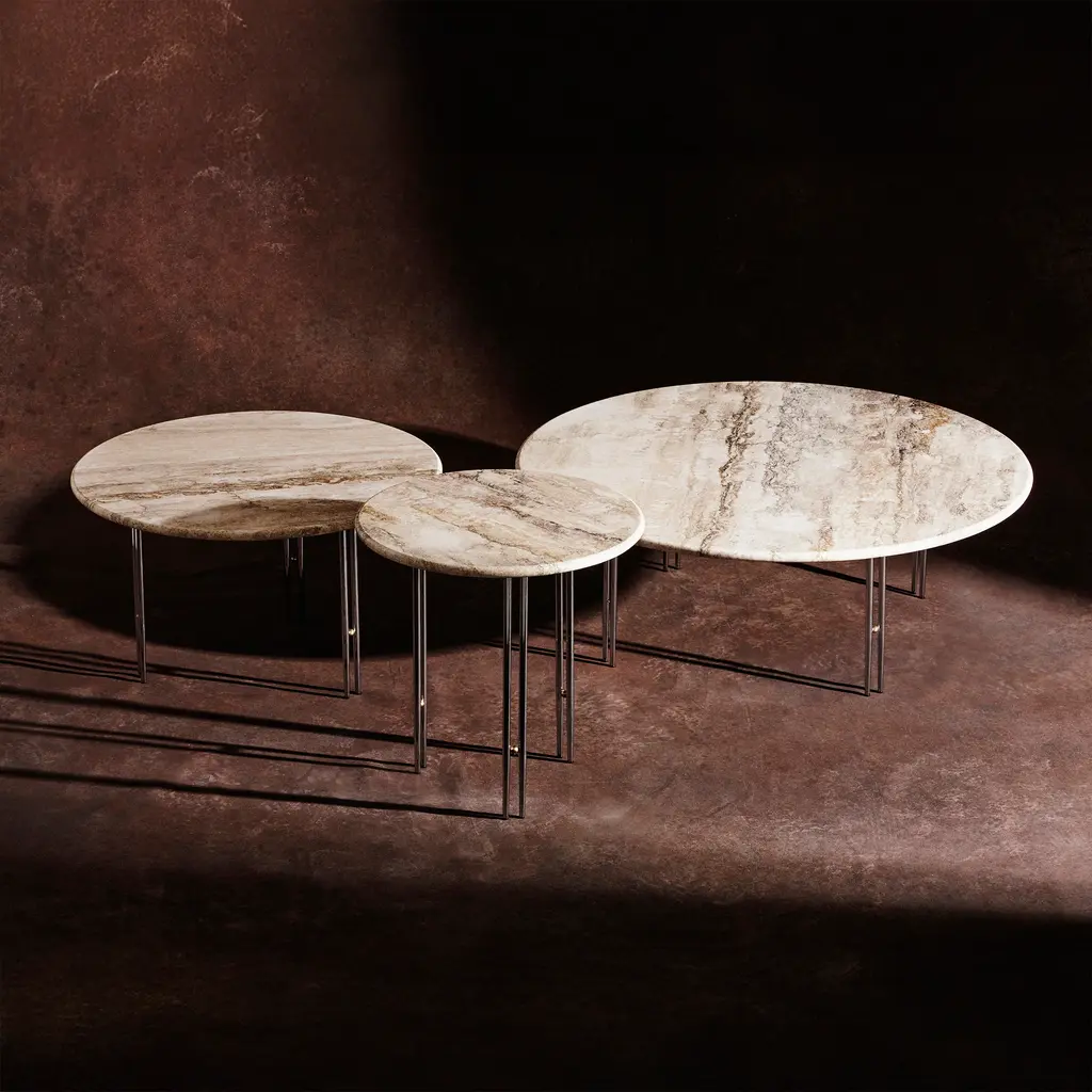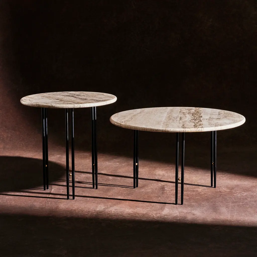 With its mesmerizing and randomly patterned marble tabletop, each of the coffee tables in Gubi’s IOI series is totally unique. Design duo GamFratesi emphasize the luxurious and organic nature of the stone and its individual veining and striations. With a nod to Art Deco, the dual metal table legs are linked by a small solid-brass sphere, reflecting the shape of the letters that form its name, “I-O-I.” With 2 different heights and diameters, the coffee table works well in pairs or clusters but also admirably holds its own as a single player to anchor a seating arrangent.
