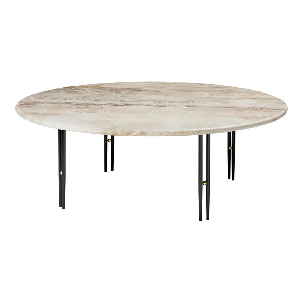 The IOI Coffee Tables by GamFratesi are a celebration of Italian materiality, featuring solid brass and gray Emperador and white Carrara marble. The use of marble anticipates a growing desire for the honesty and authenticity of organic materials. The careful selection of colors and textures keeps its materiality alive in the final design and individual stones are chosen for their veining and striations, giving each table a unique expression of its own. Drawing on geometric Art Deco references with a contemporary design language, the collection explores the empty space between the physical form as much as the form itself. The IOI Coffee Tables share a common ‘sticks and sphere†motif, reflected in the shape of the letters that form their name, pronounced ‘i-o-i.†The tableâ€s twin legs are linked by a small solid brass sphere, that works as both a functional ‘spacer†to strengthen the dual pipe-like legs, and as an intimately considered signature detail or ‘pause†that emphasizes both its own materiality and the careful attention paid to the spaces between the elements of each piece. At three different heights and diameters, the IOI Coffee Tables work well in pairs, groups and even clusters or alone as a single table alongside GUBIâ€s extensive range of lounge chairs and sofas.