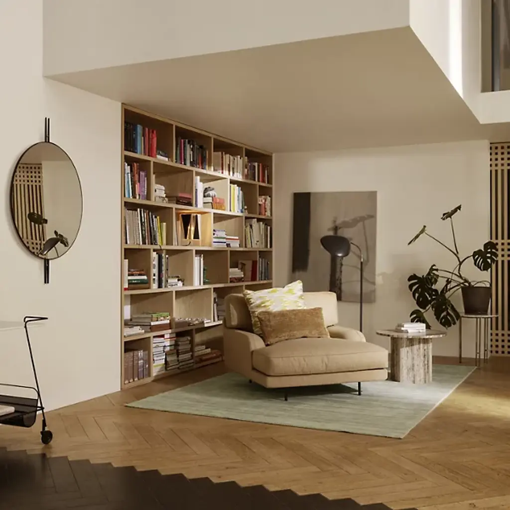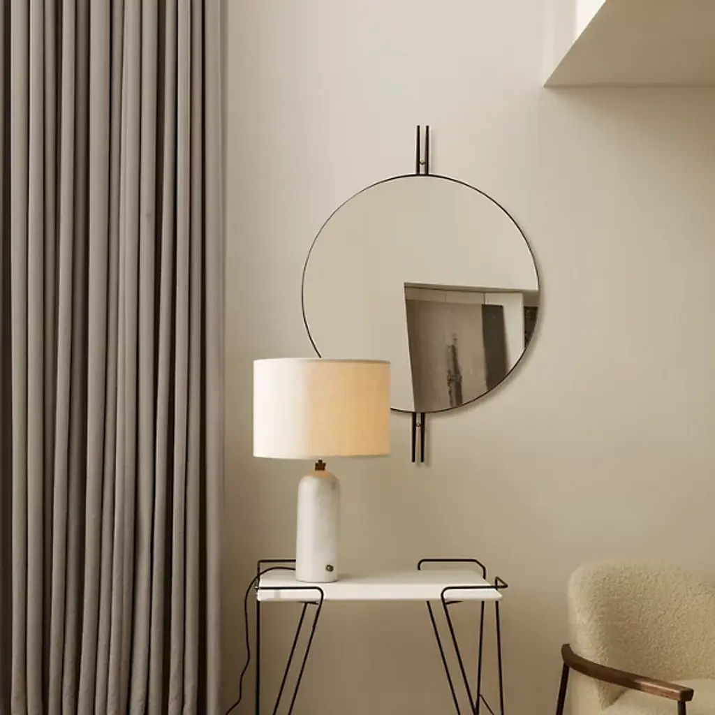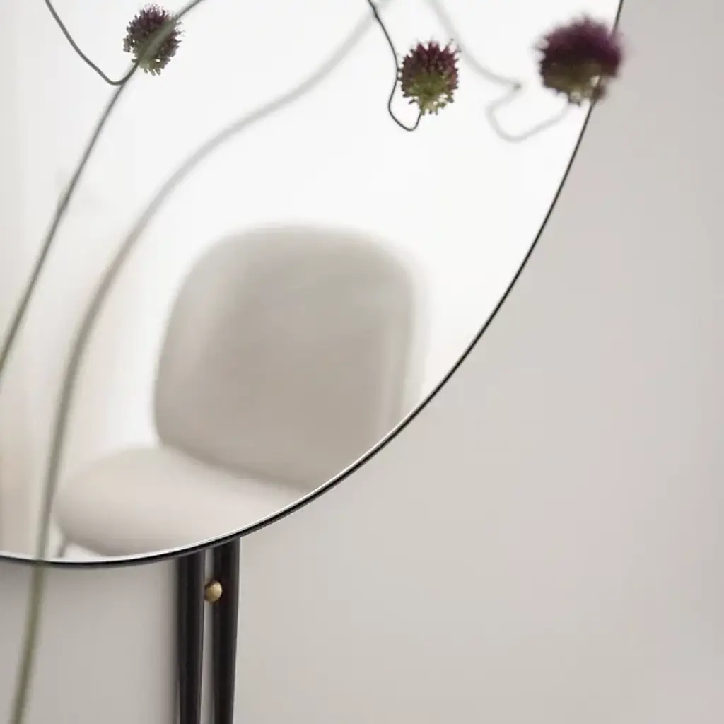The IOI Wall Mirror by GamFratesi is a blend of Italian elegance and modern design, featuring solid brass and steel with a charming "sticks and sphere" motif. Inspired by Art Deco geometry, this mirror adds sophistication to any room. It pairs beautifully with the matching coffee tables for a cohesive, stylish look.