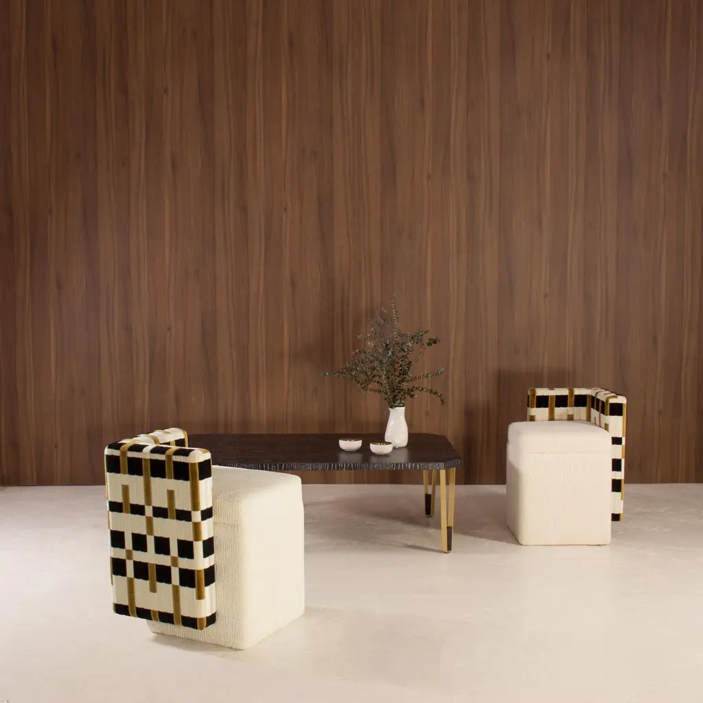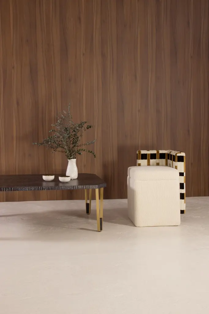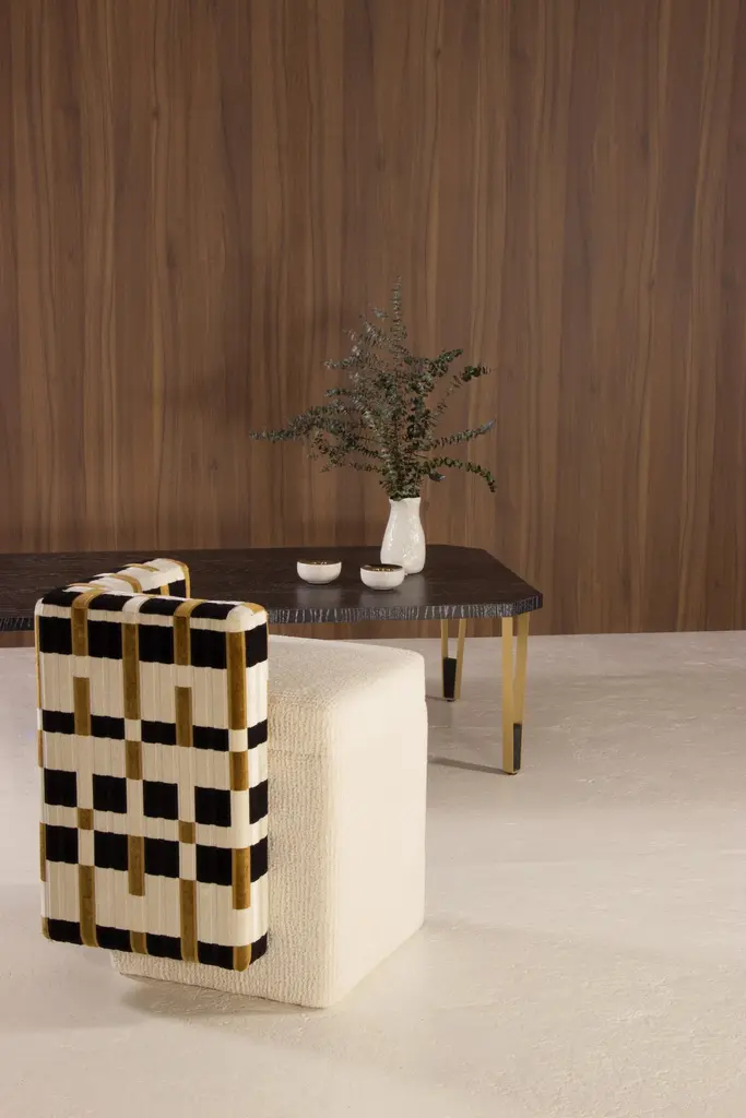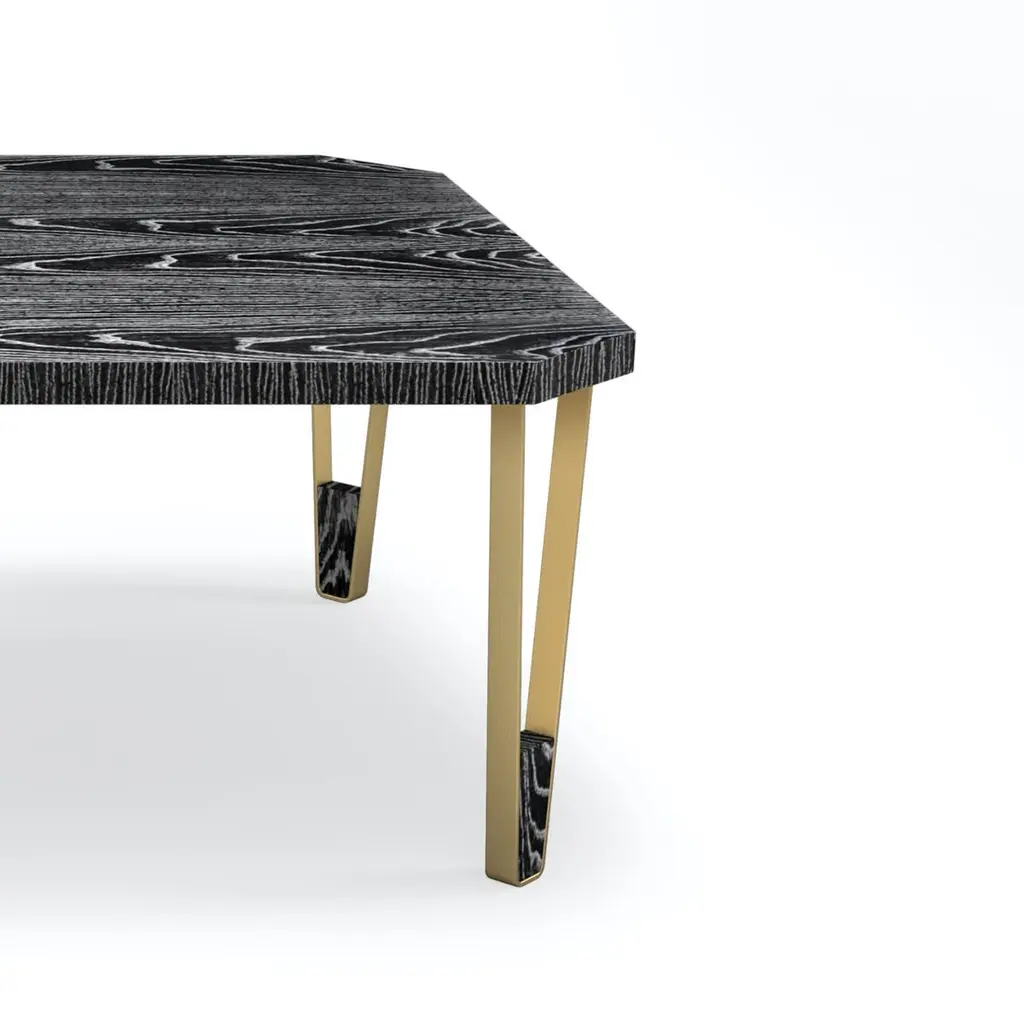 The remains of Ionic temples with their beautiful surviving columns motivated the creation of the Ionic coffee tables, each one with tripartite columns missing one of its elements.Designed as an incomplete Ionic column, the base of this author design piece, presents the forms of the base and capital as the missing shaft has been replaced by a modern metal structure. In opposition to the Classic constructive process, this table has a delicate tapered design that allows less contact with the floor.The modern table, with metallic brass details that can be combined with marble or wood, is simple and versatile. Though to be an elegant decor element, Ionic completes both contemporary and classic interiors.Product detailsTop: ebony limed oak with matt varnish.Base: brushed brass with matt varnish.Product optionsTop: marbles, wood veneers, natural, aged or degrade gold/silver/copper leaf or any Ral Classic color finished in matt, half gloss or high gloss varnish.Base: polished, brushed, oxidized brushed or aged brushed brass/copper/steel.Weight 28Kg 61.8 lbsMade to order. Custom sizes and other finishes are available under request. Designed by Joana Santos Barbosa, 2017. Handmade in Portugal.
