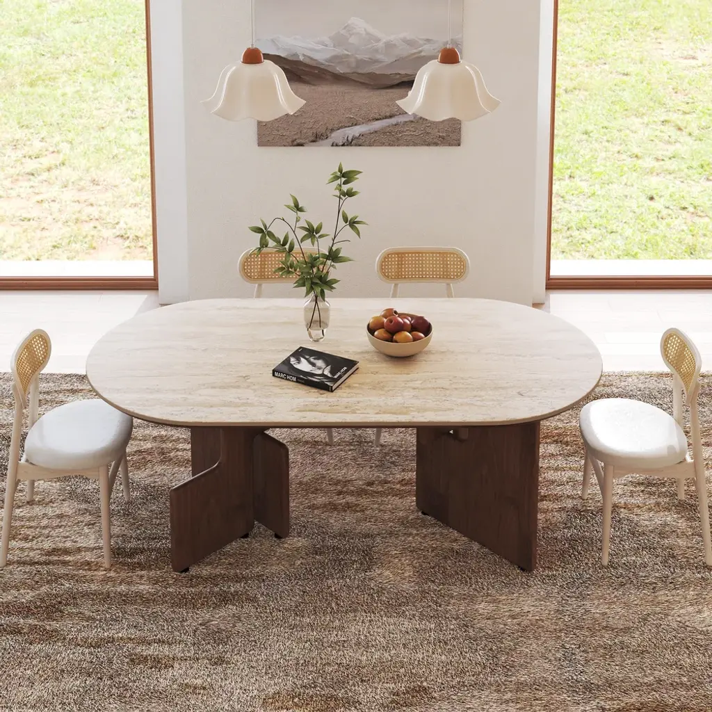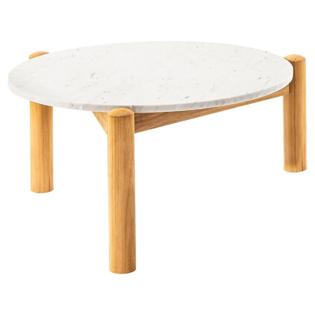 The Iris Coffee Table by Asplund stands out with its elegant stone top and carefully crafted details. Designed by Daniel Lavonius Jarefeldt, this round table features softly rounded corners on its wooden base, where the legs subtly embrace the top. The table's design is inspired by Japanese wood-joining techniques and Swedish craftsmanship. The table top, available in 4 stone finishes, is supported by a solid oak base available in white stained oak or walnut oak. Available in 3 sizes.