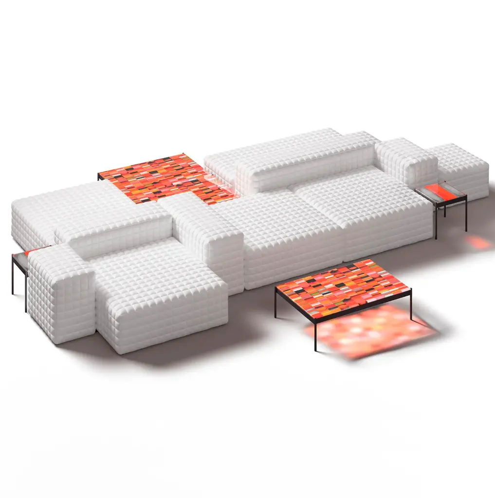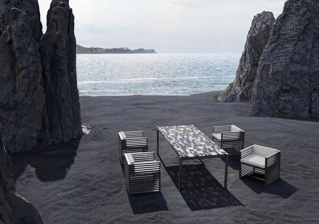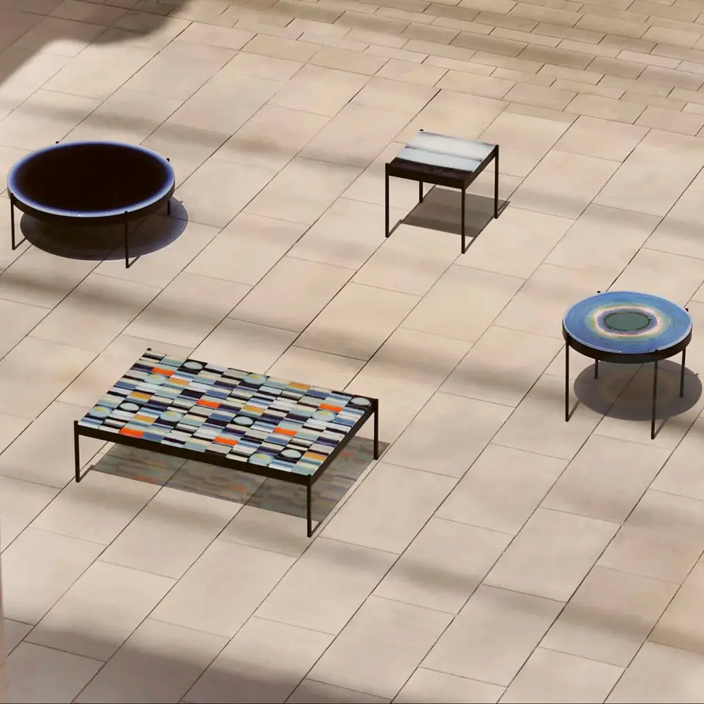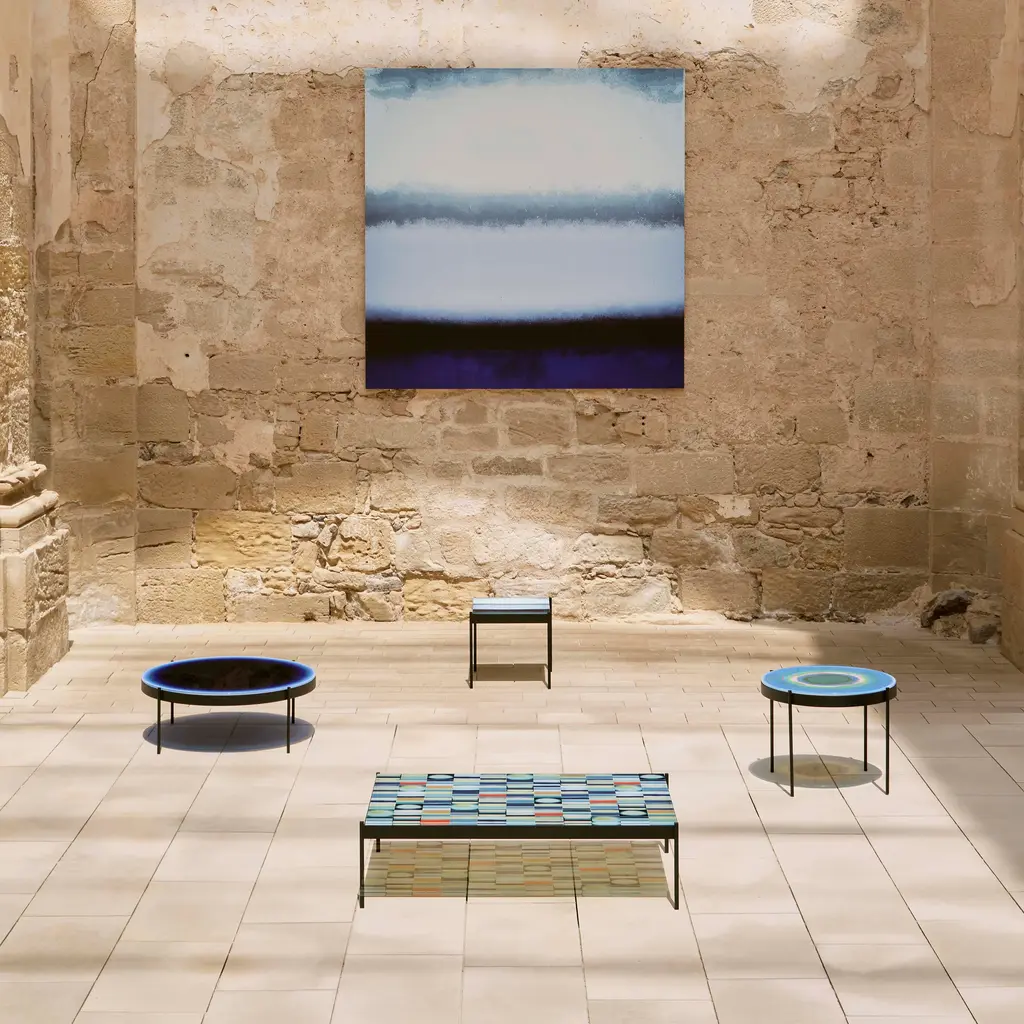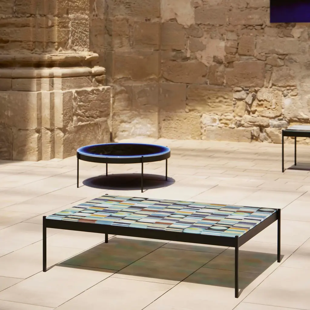 Experience art and design in your outdoor space with the Iris Rectangular Coffee Table from Gandia Blasco. Designed by Alejandra Gandía-Blasco, its vitrified printed glass top captures the beauty of natural light from every angle. Available in shades of blue, orange, and neutral, it complements any GANDIABLASCO outdoor collection with a touch of color. Highlights