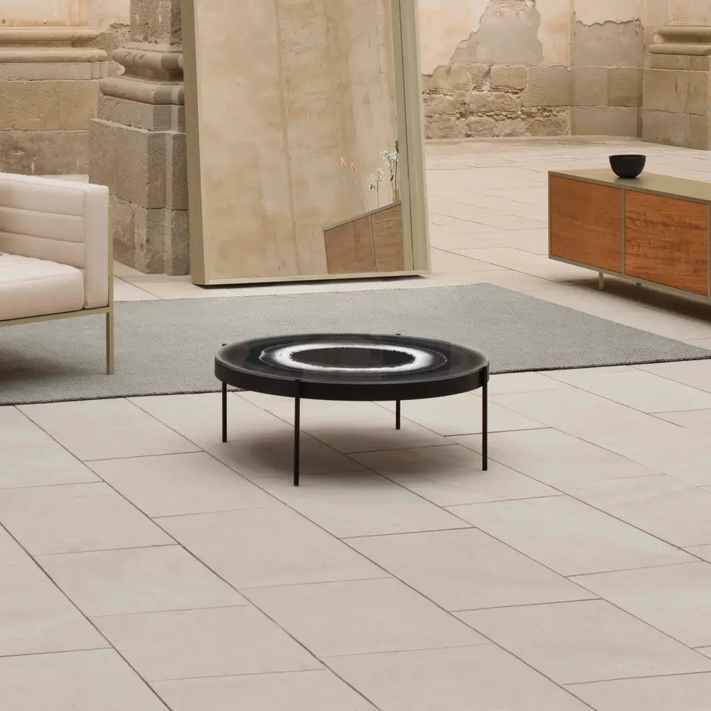 Add a touch of elegance to your outdoor space with the Iris Outdoor Round Coffee Table from Gandia Blasco. Designed by Alejandra Gandía-Blasco, this table features vitrified printed glass tops that reflect the designer's artistic use of natural light. With three color options and different measurements, it complements any GANDIABLASCO collection for a sophisticated touch. Highlights