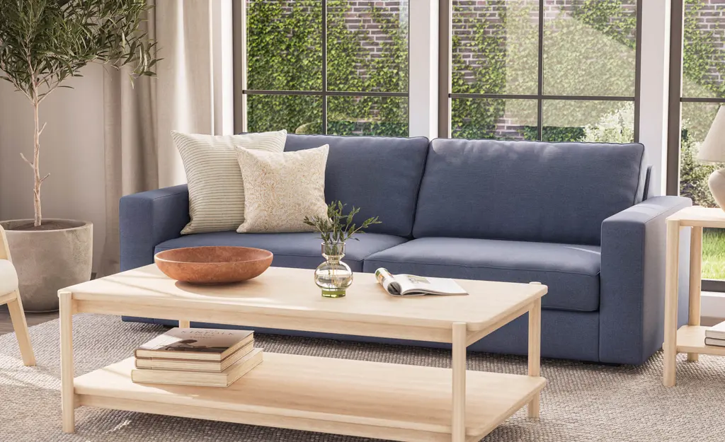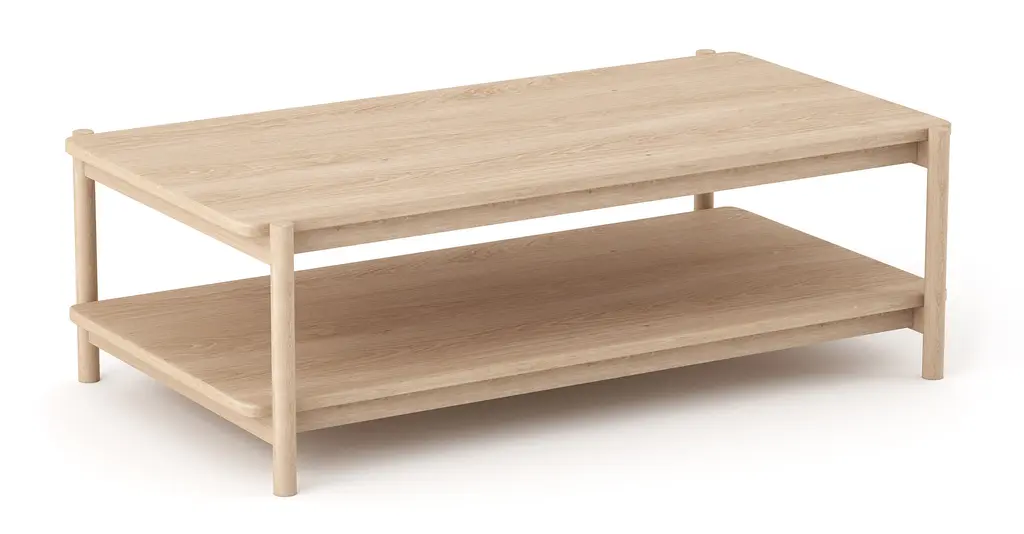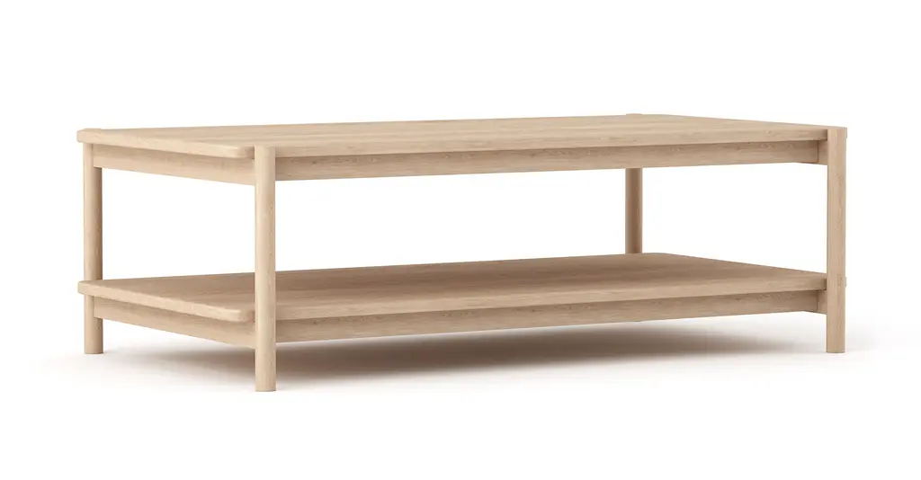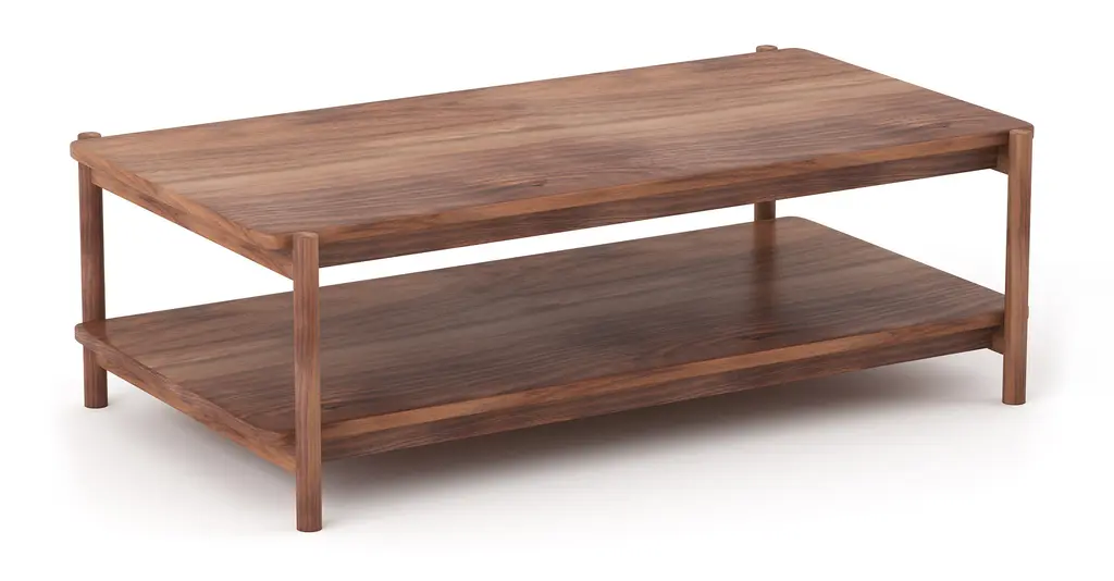 Iris Rectangular Coffee Table's just-right size supports all your sips and snacks with simple, refined style and within easy reach between seats. Its open design and lower shelf let your favorite possessions shine: style with a stack of coffee table books, your favorite ceramic bowl, and voilà!Tops and sides crafted in your choice of beautiful, 100% solid hard White Maple or American Walnut. For additional strength and lightness, FSC-certified, low-VOC CARB 2 compliant Maple or Walnut hardwood plywood is used elsewhere.