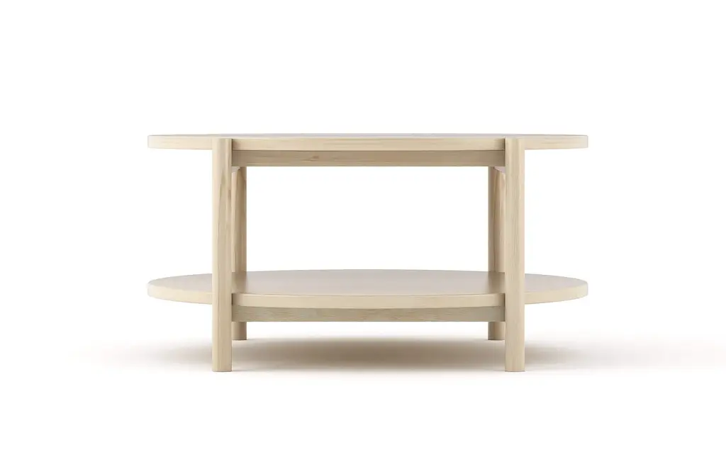 Iris Round Coffee Table's just-right size supports all your sips and snacks with simple, refined style and within easy reach between seats. Its open design and lower shelf let your favorite possessions shine: style with a stack of coffee table books, your favorite ceramic bowl, and voilà!Tops and sides crafted in your choice of beautiful, 100% solid hard White Maple or American Walnut. For additional strength and lightness, FSC-certified, low-VOC CARB 2 compliant Maple or Walnut hardwood plywood is used elsewhere.