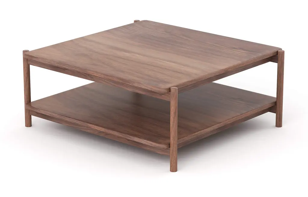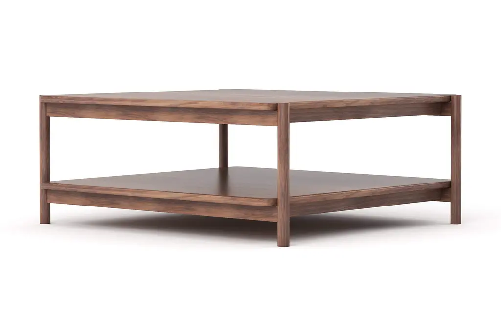 Iris Square Coffee Table's just-right size supports all your sips and snacks with simple, refined style and within easy reach between seats. Its open design and lower shelf let your favorite possessions shine: style with a stack of coffee table books, your favorite ceramic bowl, and voilà!Tops and sides crafted in your choice of beautiful, 100% solid hard White Maple or American Walnut. For additional strength and lightness, FSC-certified, low-VOC CARB 2 compliant Maple or Walnut hardwood plywood is used elsewhere.