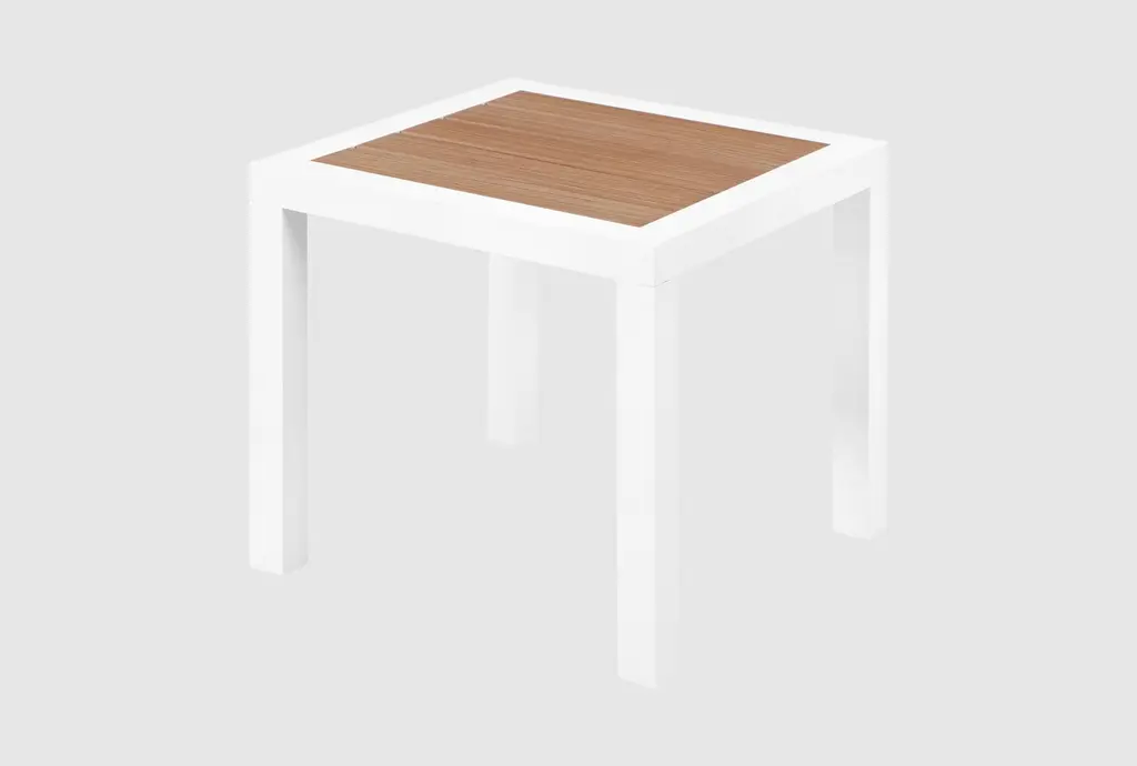The table of the Cottage line is the only rectangular one. The aluminum frame is the same of the other elements such as the living armchairs, the sofa, the pouf and sunbed. The top is in iroko wood.