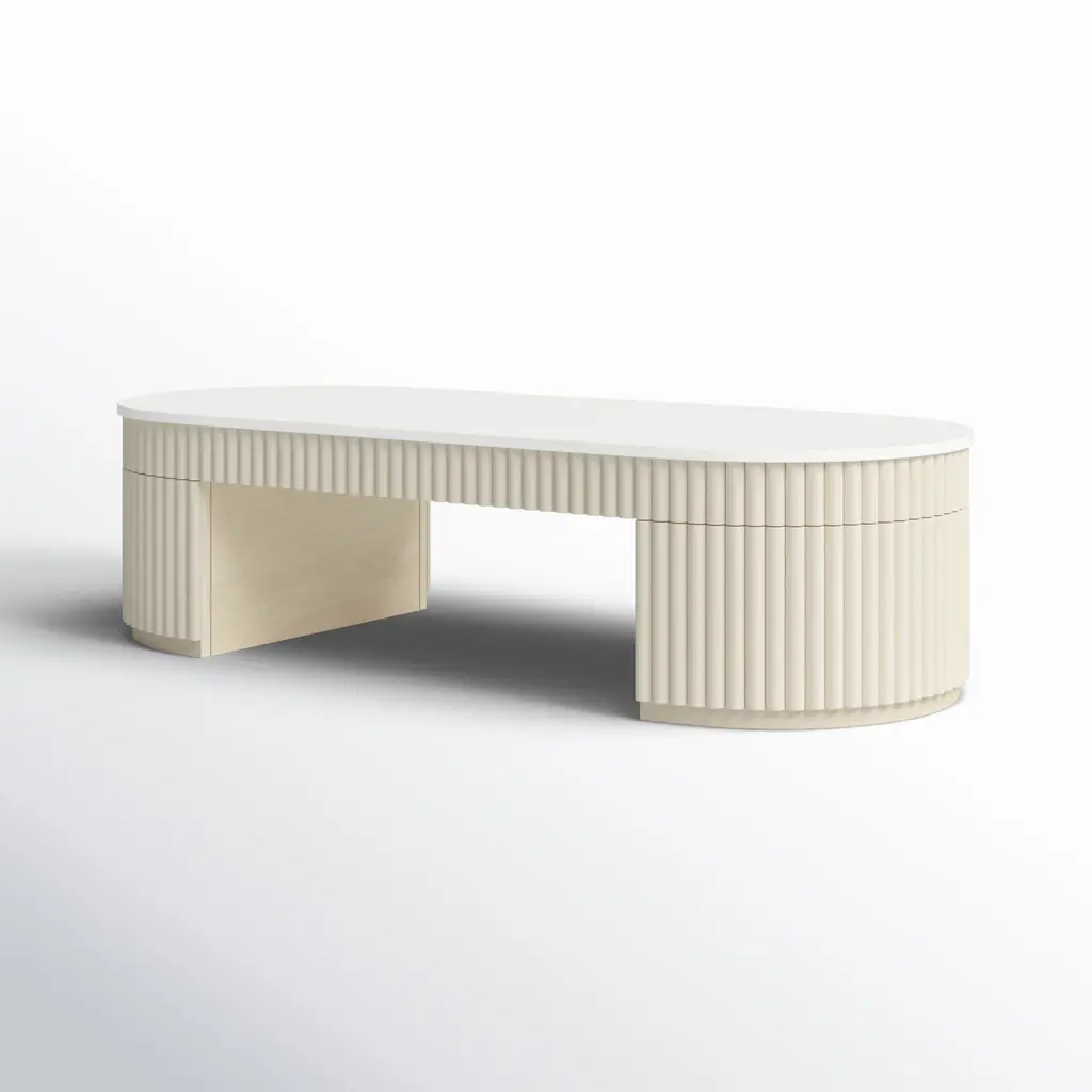 Isadora Ribbed Coffee Table, Sesame White