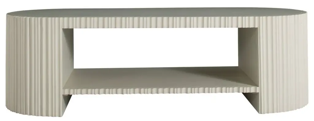 Embrace the contemporary allure of the Isadora Coffee Table, a minimalist marvel with a twist. Its smooth oval top is perfectly complemented by a rhythmic array of vertical ribbing along its sides, delivering texture and visual interest to its understated silhouette. Crafted for versatility, it features a second tier, ideal for organizing your favorite reads or showcasing decor. The table allows for seamless integration into any interior design scheme, providing a modern touch while offering practical space solutions for your living area. The Isadora is not just furniture, but a piece of modern art that combines everyday functionality with the purity of sculptural form.