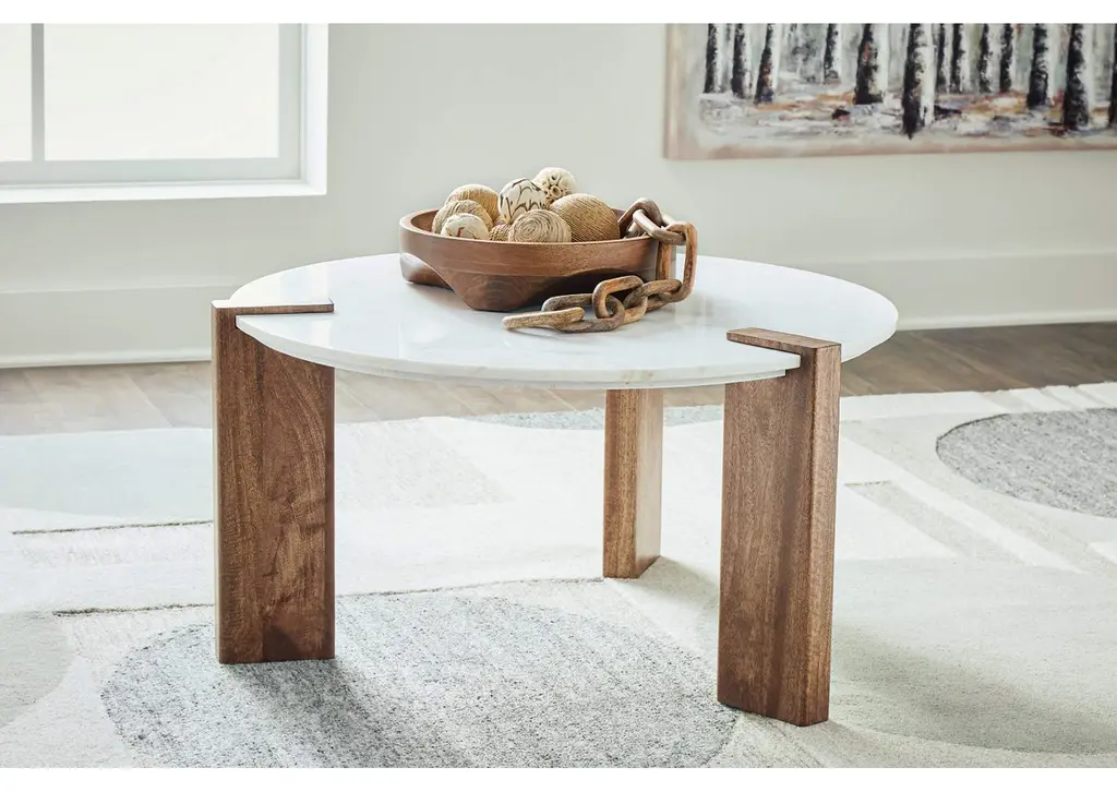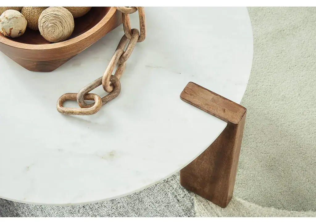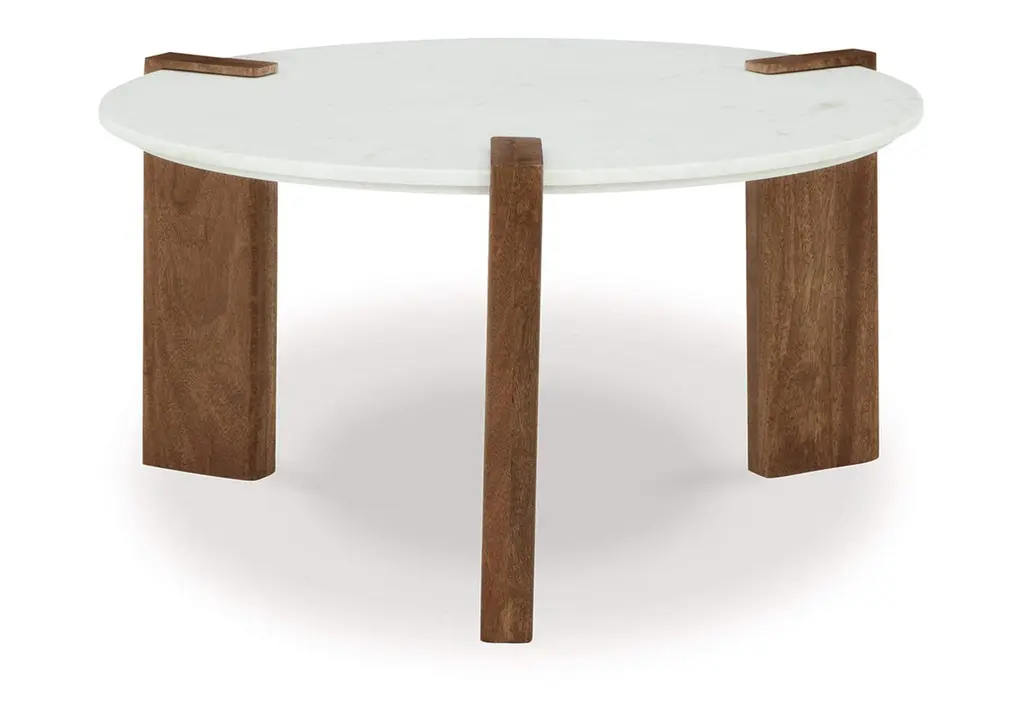 With its back-to-nature sensibility, the Isanti coffee table is a natural fit for outfitting your modern living area. Its clean-lined design lets the beautifully organic quality of the mango wood shine through, complemented by the sleek refinement of a marble top. This table is the ideal spot for snacks, beverages and that stack of unread books. Weight 103.000 lbs. (46.35kgs.)