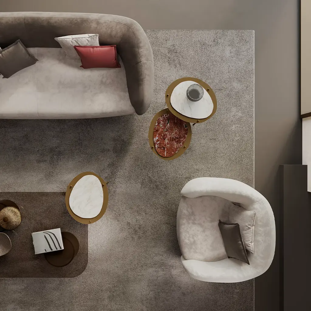 Ethereal charm and sophistication define this stupendous set of two coffee tables, the utmost expression of the unparalleled elegance of marble. Composed of a lower and a higher piece, both designs rest on a bronze-finished metal structure enhanced with a layer of white and red marble respectively, for a captivating flair. Please consult the Concierge for further details and customization options.