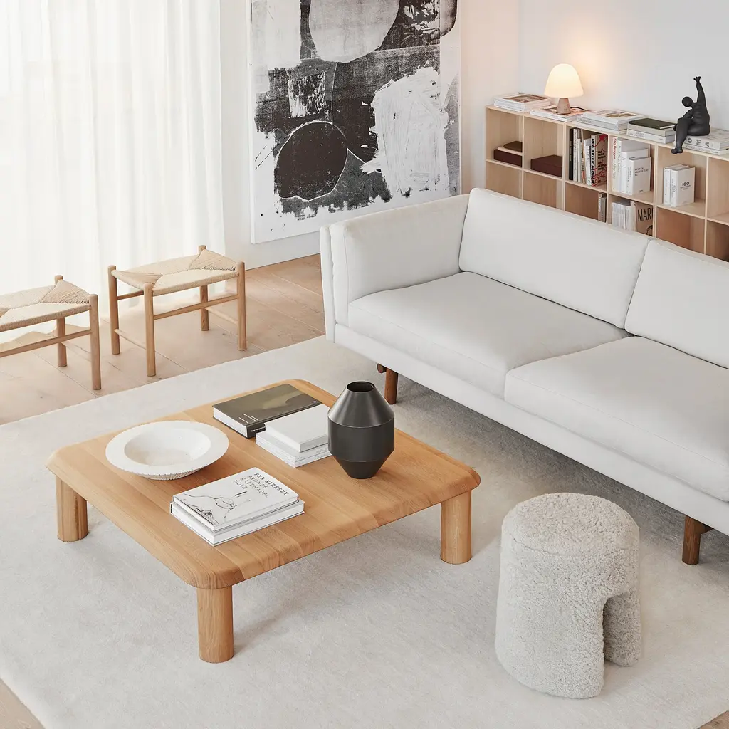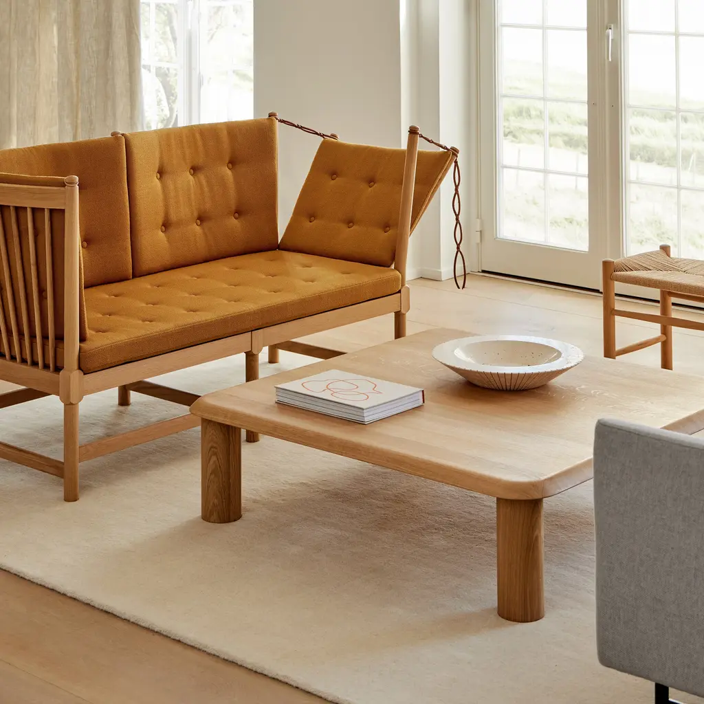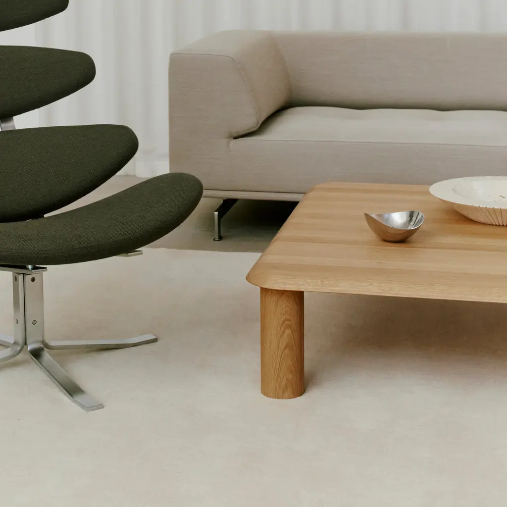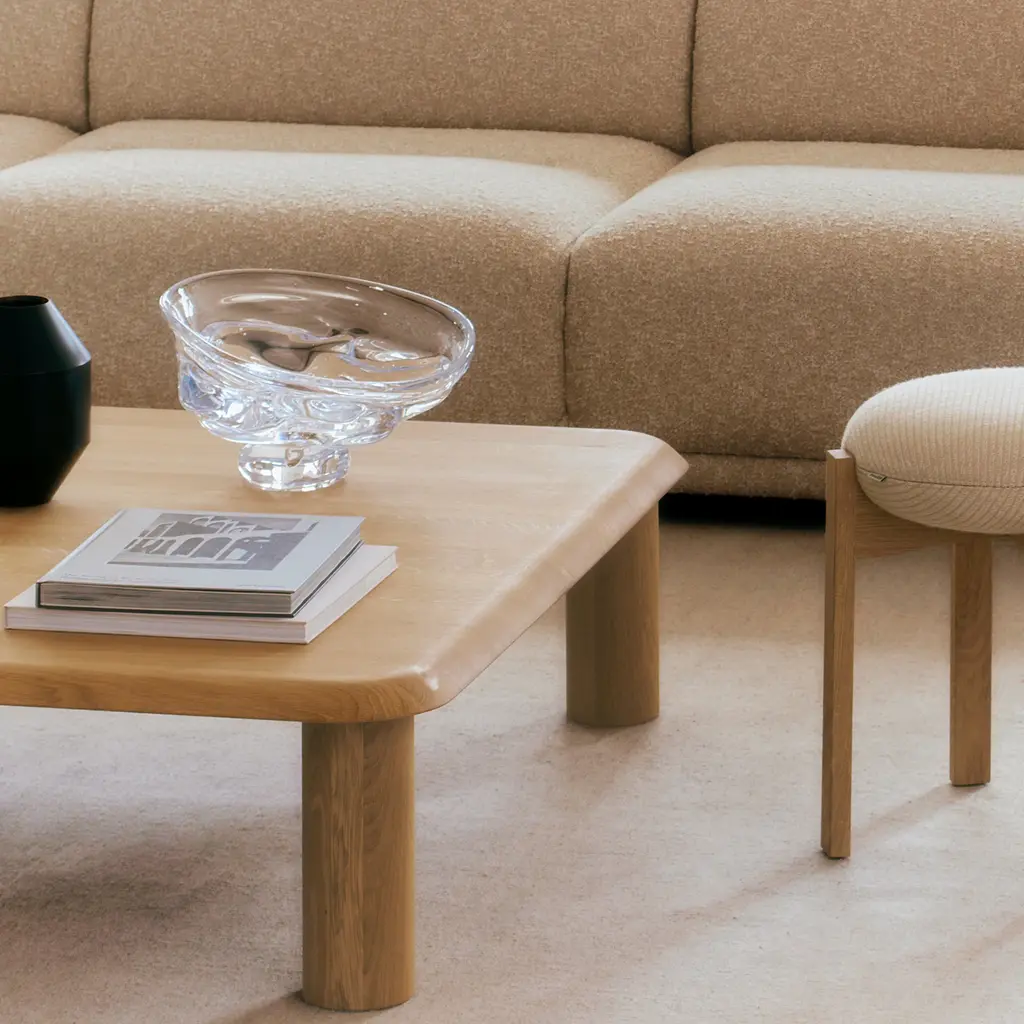 Danish designer Maria Bruun favors pieces with a strong, assertive presence, as in her sculptural coffee table that nonetheless touches down easily in a room. Islets hews to a precise structure with a graceful bevelled tabletop and column legs fashioned in solid light oak with a rich oiled finish. With details kept to a minimum, the designer prefers to focus on the spacial relationship of her work to its surroundings.