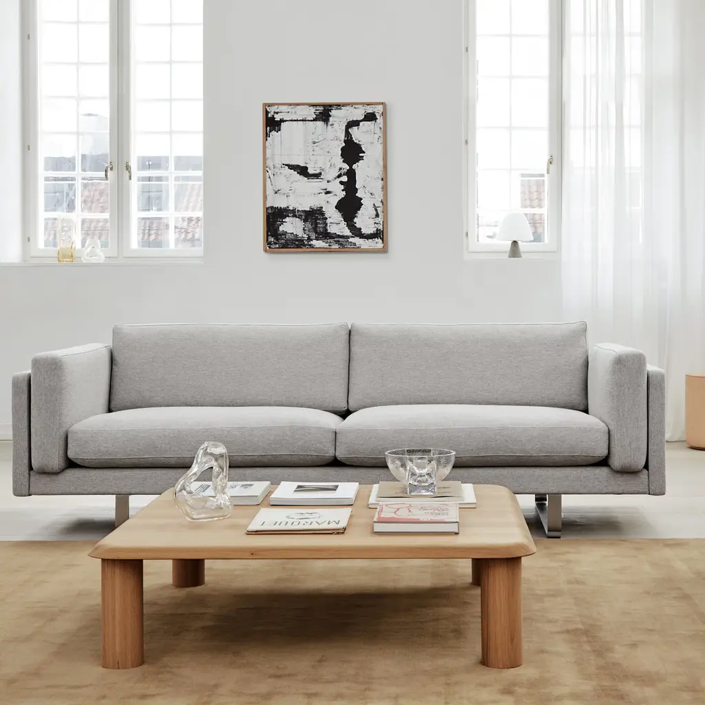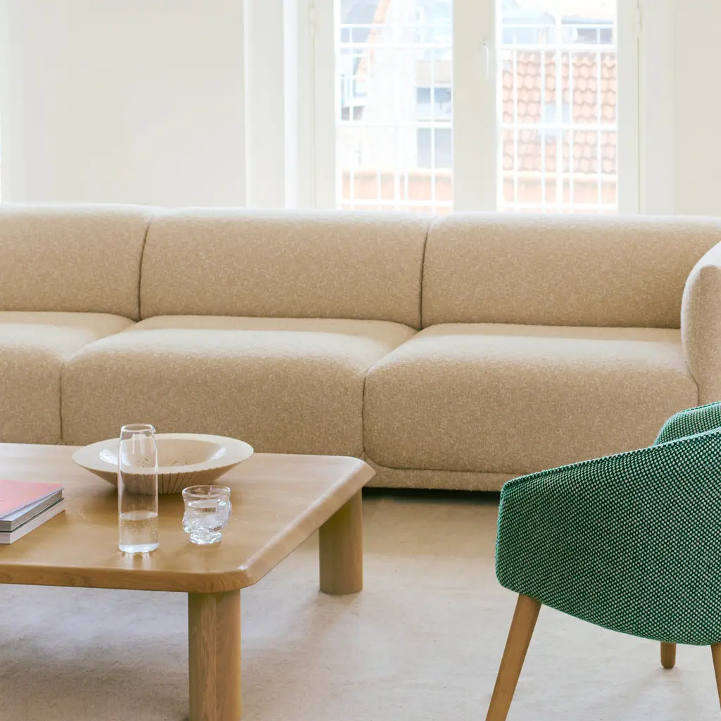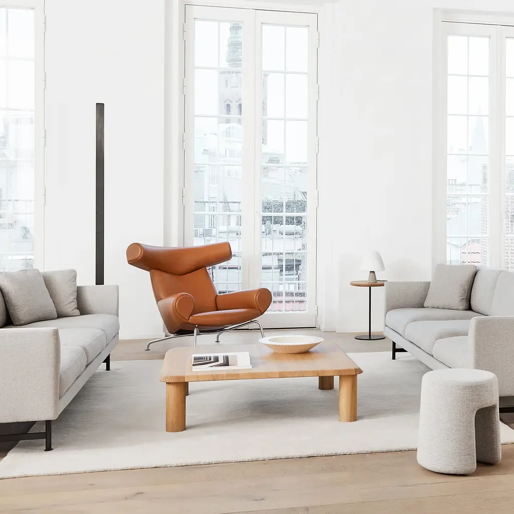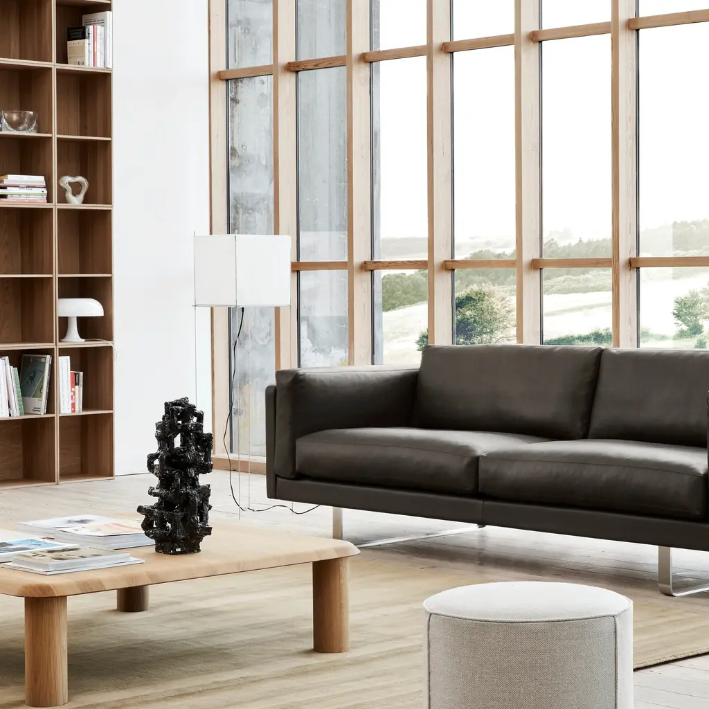 Danish designer Maria Bruun favors pieces with a strong, assertive presence, as in her sculptural coffee table that nonetheless touches down easily in a room. Islets hews to a precise structure with a graceful bevelled tabletop and column legs fashioned in solid light oak with a rich oiled finish. With details kept to a minimum, the designer prefers to focus on the spacial relationship of her work to its surroundings.