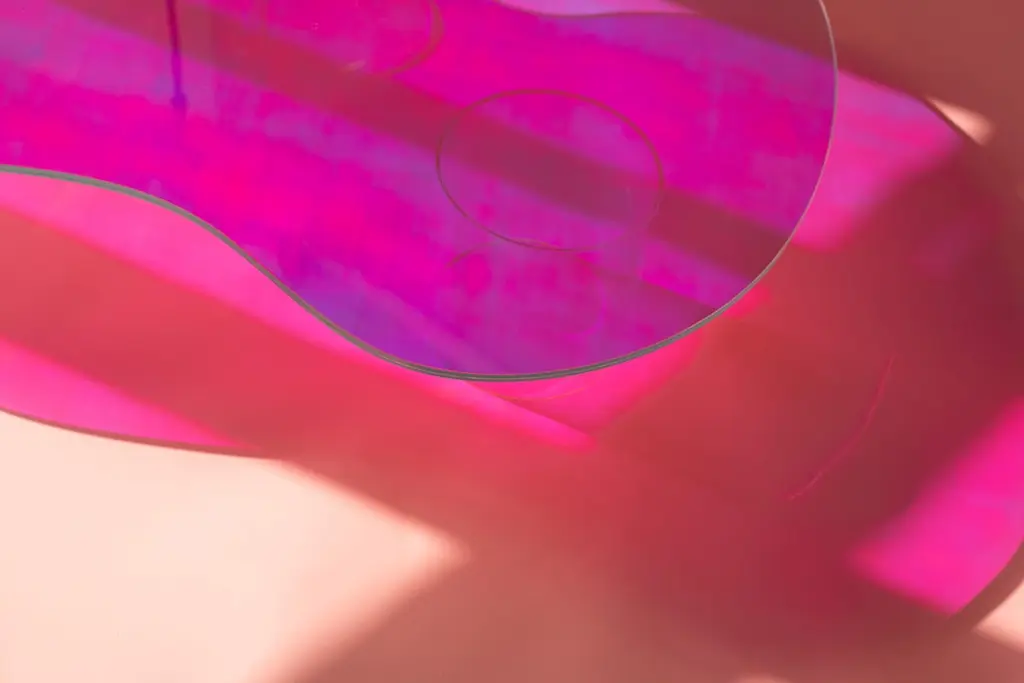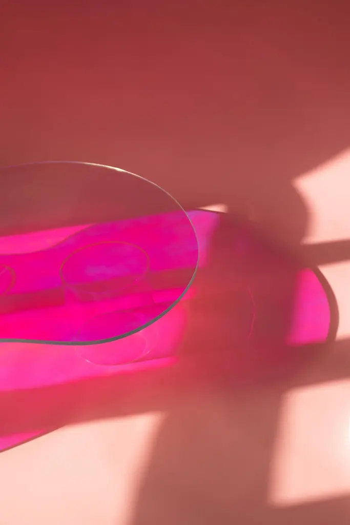 Isola coffee table by Brajak Vitberg.Dimensions: D 195 x W 100 x H 27 cm.Materials: laminated dichroic glass + plexi glass.The table is made out of glass with satin finish and dichroic insert.The colors in this kind of satin finish are more subtle but still change depending on point of view.Due to the size of this particular table, on site assembly is required.Customisation regarding size etc is available. Please contact us.can be made in Satin glass finish.Bijelic and Brajak are two architects from Ljubljana, Slovenia.They are striving to design craft elements and make them timeless through experimental designing process.The studio creates a range of products from handmade and limited small series to one-piece unique products, inspired by materials and forms that create incomplete perfection.