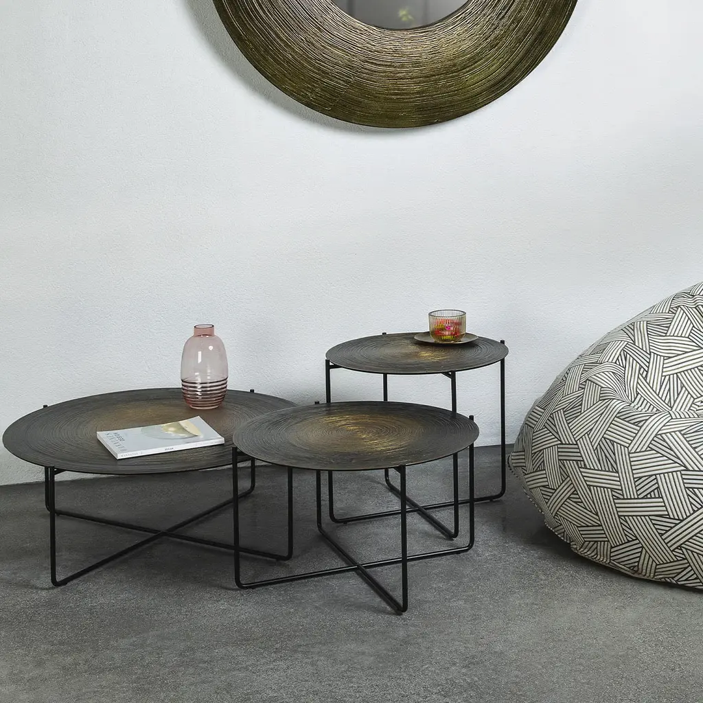 Isola Small Round Coffee Table With Bronze Concentric Brushed Resin Top
