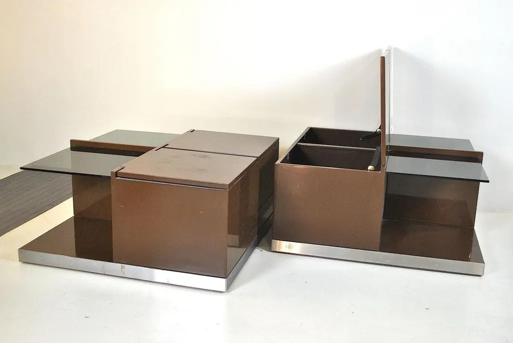 Italian Midcentury Coffee Table Dry Bar, 1970s