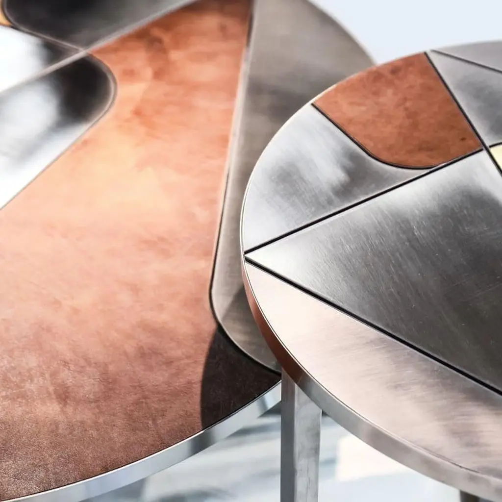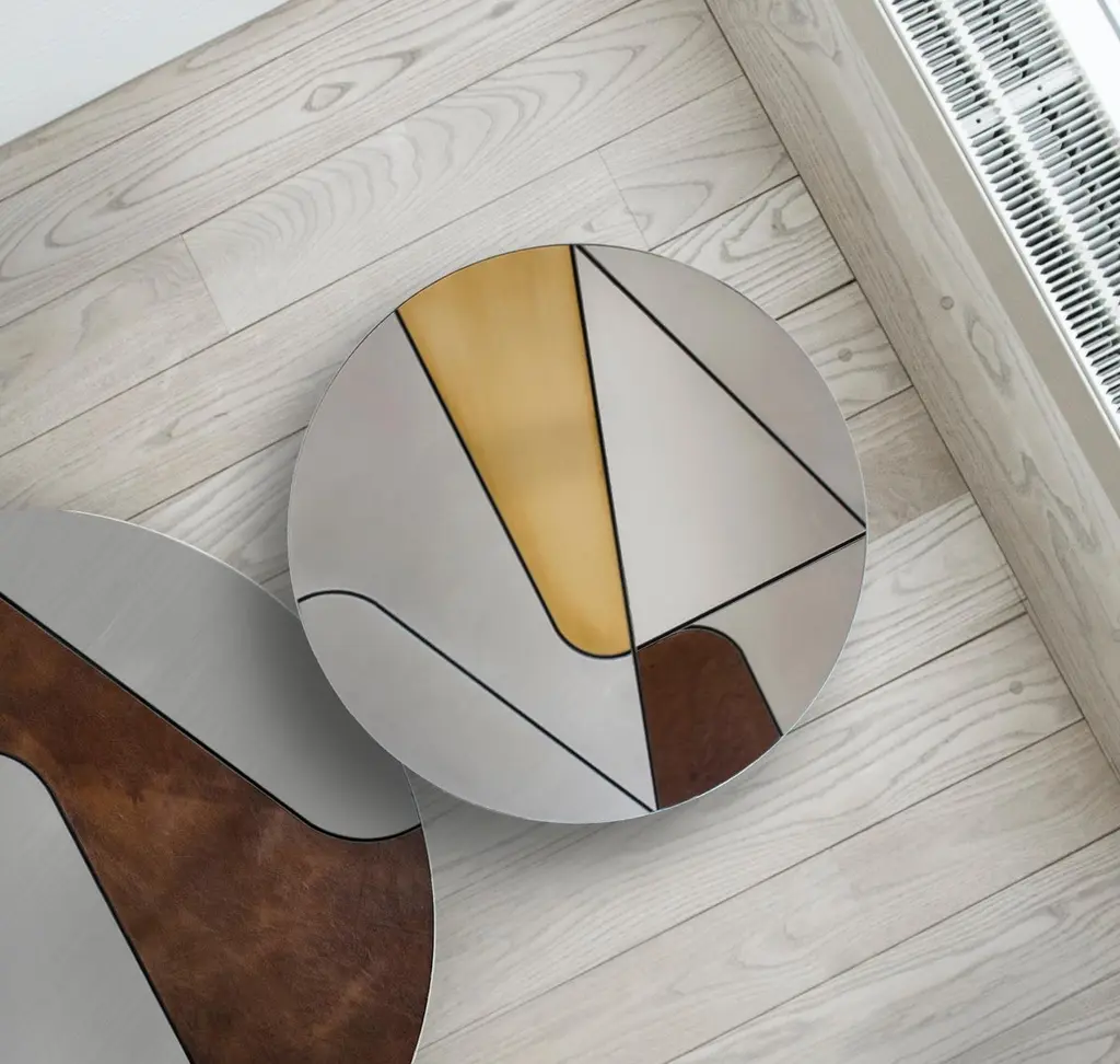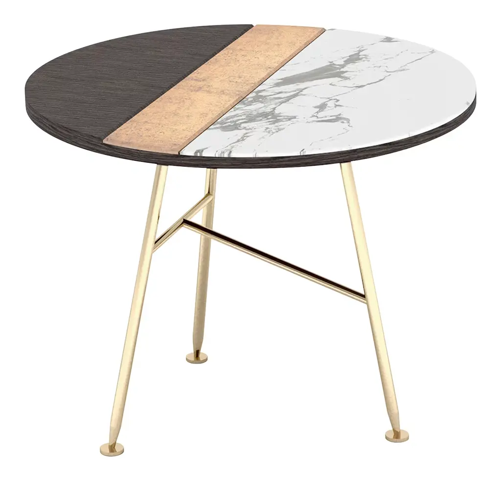 Itinera 45 Coffee Table by Atlas ProjectDimensions: Ø 45 x H 47 cm. Materials: Wood, brushed brass, leather, and stainless inox steel.Available in two different sizes. Please contact us.Coffee TablesThe geometries that give life to the mirrors’ collection are the source of the inspired-ration of the coffee table line. With their elegant sobriety, these tables offer a design solution of contemporary and absolute versatility.Our ProjectThe synergy between a thirty-year Italian craft experience and an original design, based on the need to research and develop topics up with the new aesthetic trends, gives birth to Atlasproject, an exclusive furniture collection conceived by the designer Massimiliano Giordano.Born and developed first in Copenhagen, then in Vienna and finally in Rome, the project is – as a matter of fact - a journey of contamination and encounter between the many cultures of the European Design.The production is focused on a dynamic dialogue between geometries and materials, which leads to collections of deep impact and elegance. Every piece merges essential geometric shapes with the most surprising materials, textures, and colors, as the result of a careful selection of natural materials and hand-processed metals.The Atlasproject collections are entirely made in Italy, where the tradition of artisanality is still a deep value, to ensure high-quality and long-life products.Of Neapolitan origins, Massimiliano Giordano grew up inthe family’s artistic atelier.The artisan knowledge and the design skills lead him to Atlasproject, a creative container inspired by the journey, leit motiv of his personal and professional life. In fact, the designer leaves from Naples towards Copenhagen, where he will stay for five years, and then for Vienna for five years more in the heart of the Mitteleuropean design, and finally in Rome, where he currently lives and works.The amazing connections between the encountered design souls actually represent the most significant stylistic figure of his works.