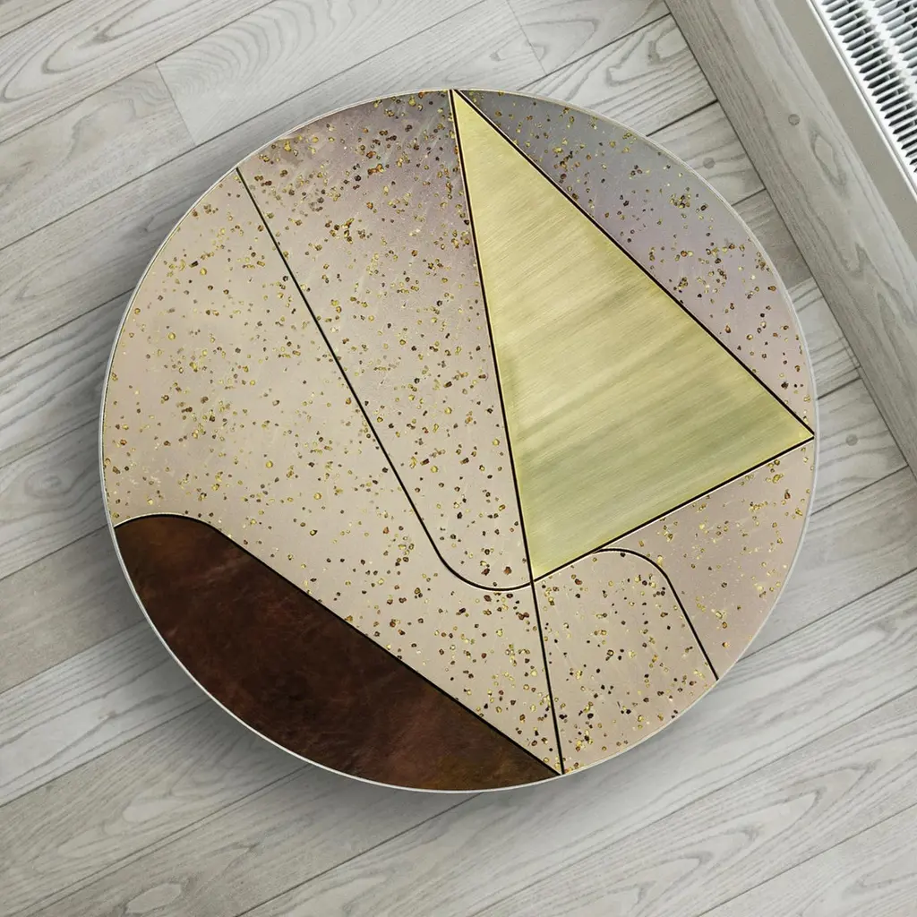 Coffee table Itinera Polvere di StelleAs part of the Itinera collection, this splendid series of coffee tables has been inspired by the unchallenged pleasure of each journey. And it’s from an amazing collaboration with the exclusive Antique Mirrors glass factory, in the frame of the “Creative Encounters” project, that these luxury coffee tables are born.The combination of the handcrafted materials inserted on the surface and connected by steel settings results in unique pieces that will be wonderful complements for every environment. Itinera Polvere di stelle coffee tableMaterial inserted : Brushed Brass - Bown Leather - Mirror by AntiquemirrorStainless Steel BodyThis item is entirely hand made in our factory using natural materials.Therefore each item is to be considered a uniques pieces: each small varation in color or trimming constitutes an extra value of the craftmade item.