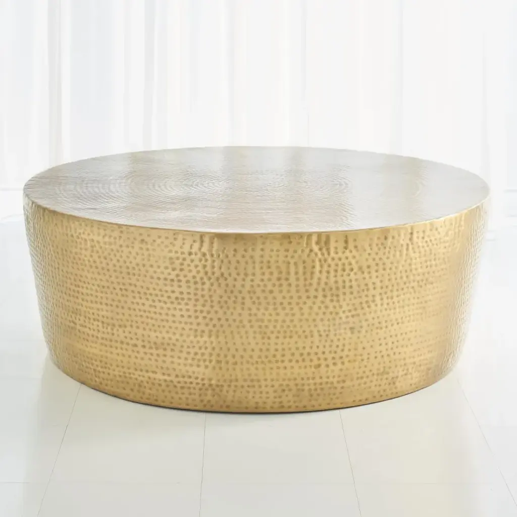 Hand hammering brings out rich detail of the solid brass sheet in the Izmir Cocktail Table. From a fashion forward perspective, Global Views offers accessories, furniture, statement lighting, and an assortment of rugs and mirrors to add beauty and joy to your home.