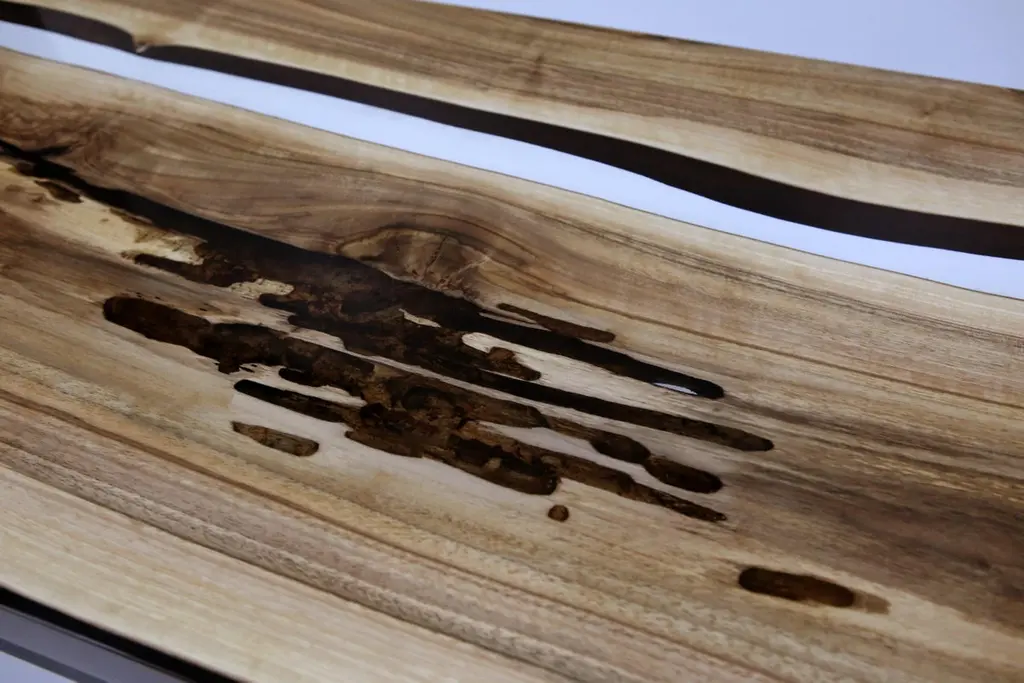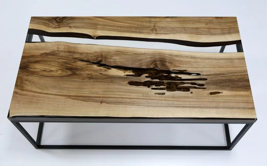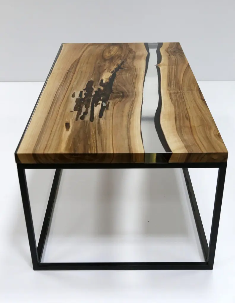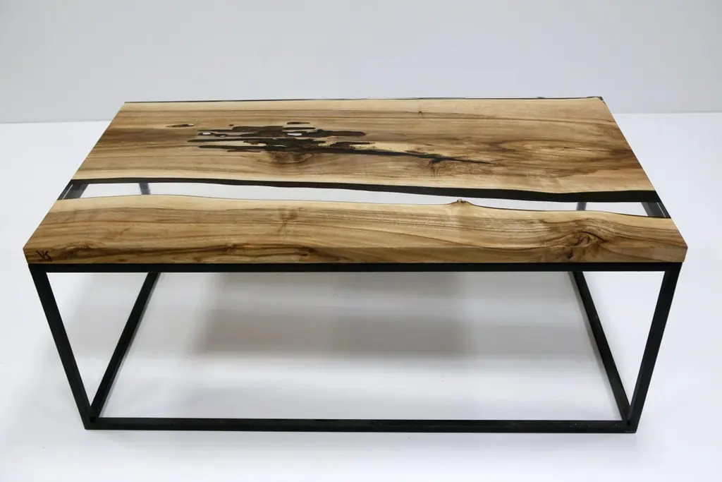 Izzy Rustik Coffee Table by KV DesignOne Of A KindDimensions: D 64 x W 119 x H 44 cm.Materials: Walnut, transparent epoxy, and metal.Everything is custom-made 1 of 1 edition. Please contact us.KV Design is a team of professionals, and we believe that our custom-made furniture is not simply part of the interior design. We use high-quality wood and epoxy resin in the production of unique state-of-the-art products. Our ideology is that our tables are not solely to be used for their main purpose, but also to be observed and enjoyed as a piece of art. Hence, we combine functionality and elegance into the creation of a captivating and complex product. For the production of our furniture, we strive to select the highest quality materials from leading brands on the market. We invest endless hours of manual labor in the making of every single element part of our furniture. However, everyorder is strictly delivered within no more than 4 weeks.