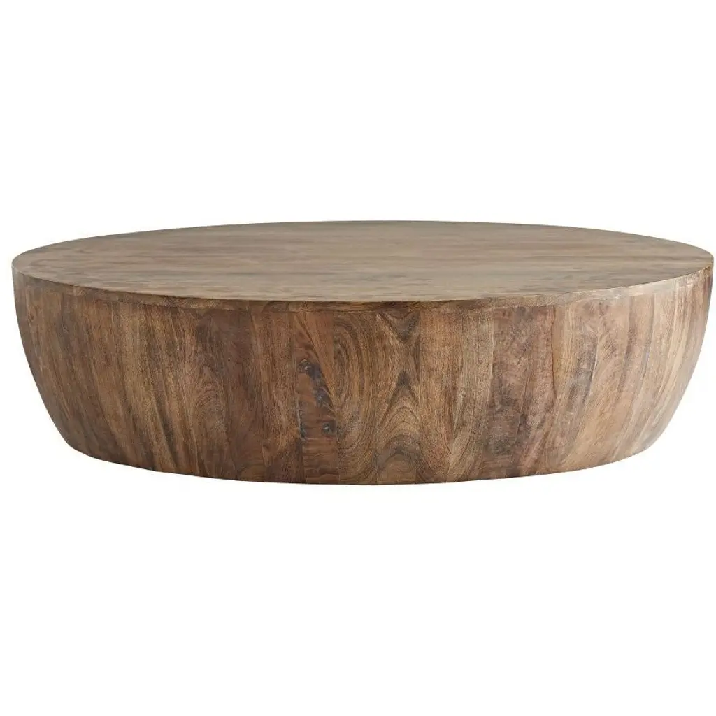 The Arteriors Jacob Cocktail Table brings both elegance and personality to your living space. With its narrow slats elegantly curving up the sides of the solid wood tabletop, this round surface is finished in a warm and unique new tobacco wash. Elevate any area of your home with this sophisticated and tasteful piece ideal for the living room or office. Highlights