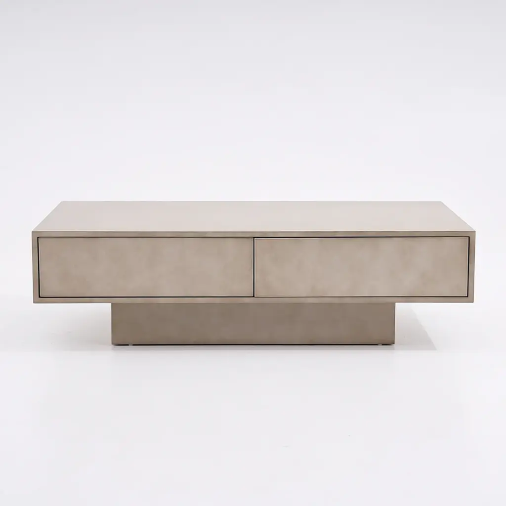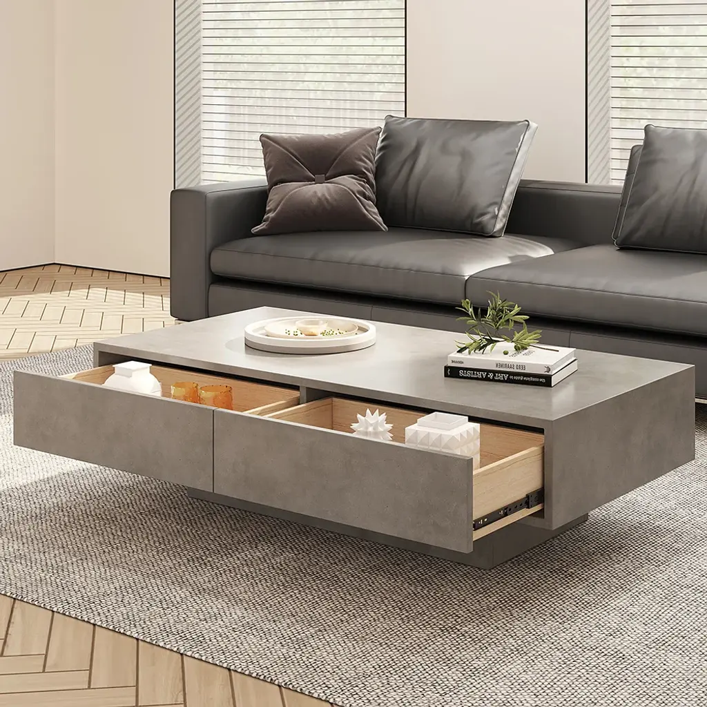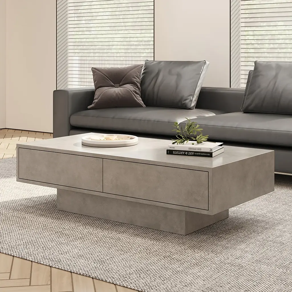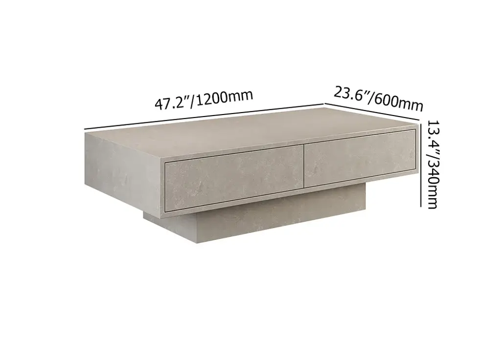 Japandi Rectangle Concrete Gray Coffee Table With 2 Drawers & Open Storage