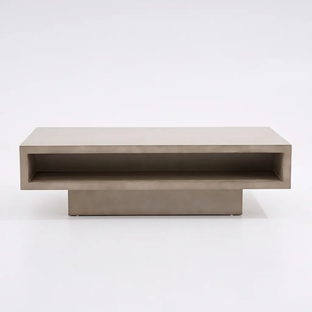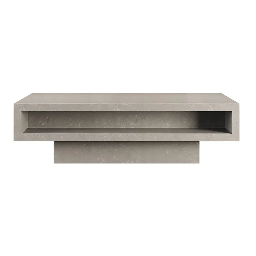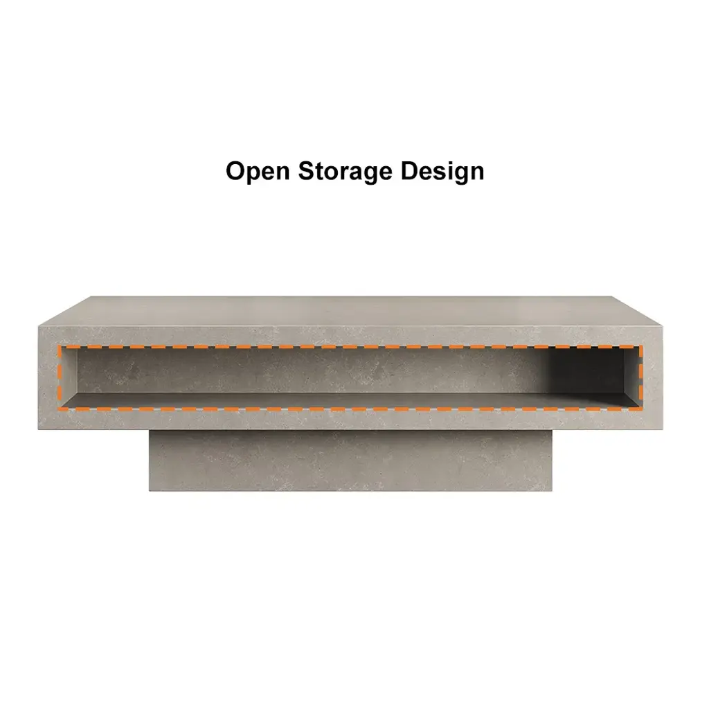 Japandi Rectangle Concrete Gray Coffee Table With 2 Drawers & Open Storage