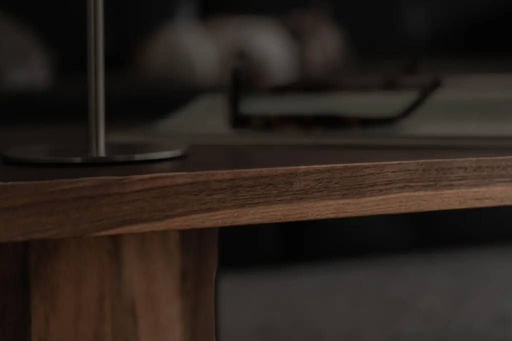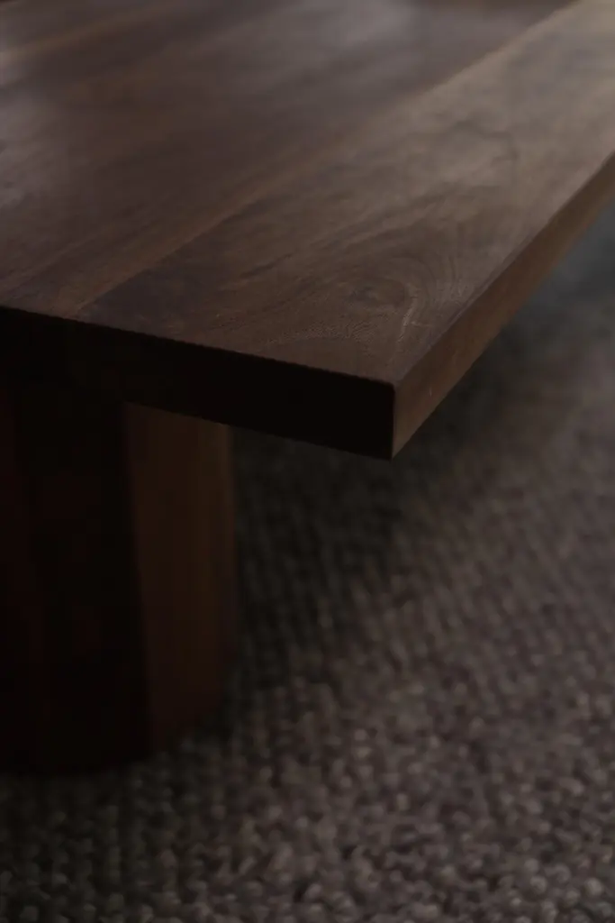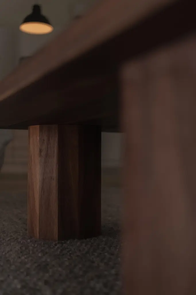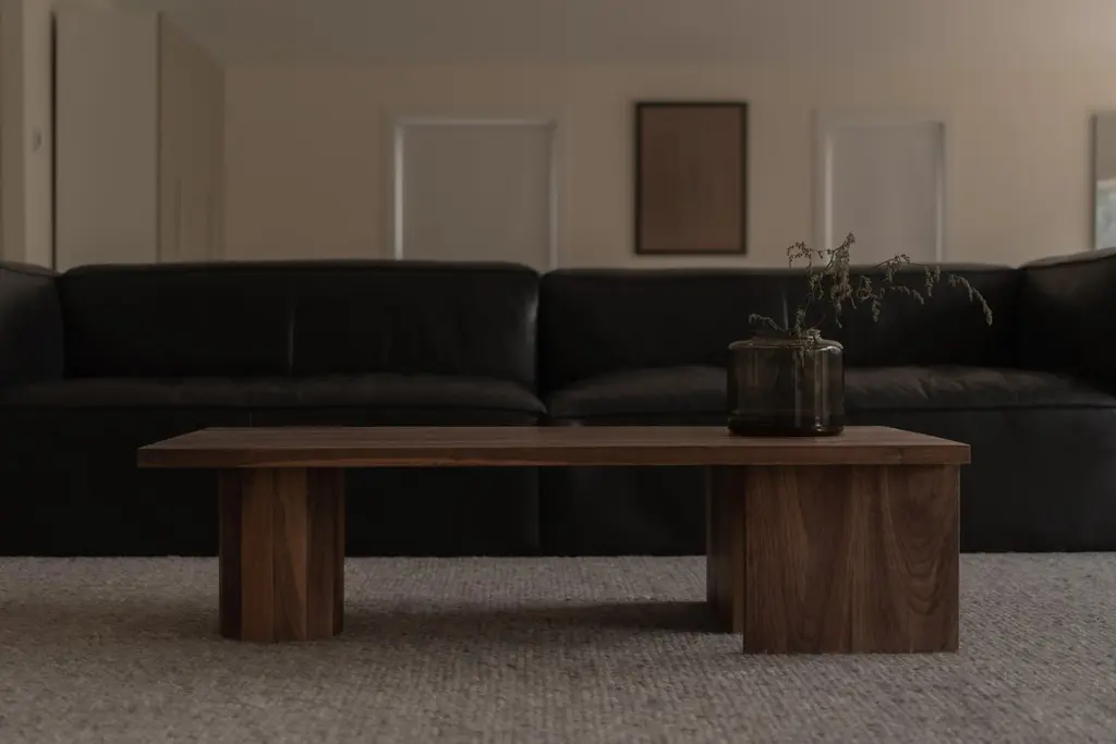 A striking study in restraint, this Japanide-inspired coffee table celebrates balance, proportion, and the quiet beauty of natural materials. Crafted in solid walnut, the table’s clean geometry and grounding presence recall the timeless simplicity of Japanese joinery and the modernist pursuit of form through function.The wide plank top rests with effortless poise on two bold slab legs, creating a strong silhouette that feels both architectural and serene. Each surface is hand-finished to reveal the walnut’s natural grain, allowing the wood’s character to define the piece. The understated profile makes it versatile in contemporary interiors, while its meditative design roots it in tradition.This piece embodies the philosophy of “less but better”—an invitation to slow down and connect with the honest beauty of materials and space.