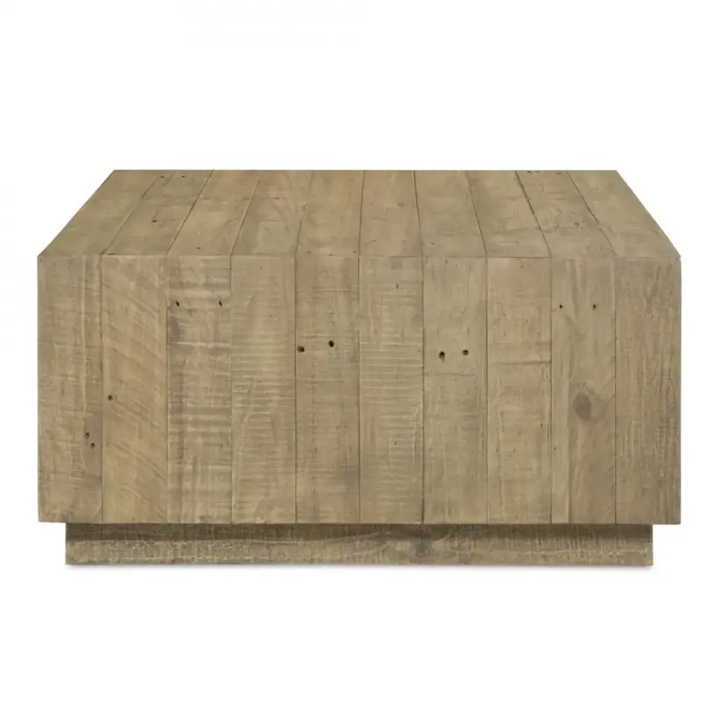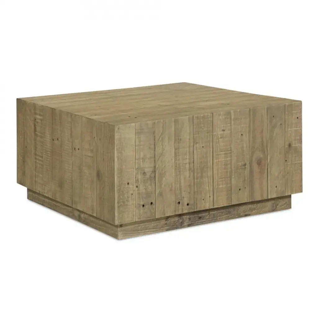 The Jasper coffee table's reclaimed pine construction takes center stage thanks to the clean lines and simple form design. This eco-friendly table showcases unique markings, knots, and nail holes that add vintage appeal and character, while its joinery detailing and pedestal base complete the piece. Its hollow interior ensures effortless mobility, making it a versatile addition to any space.