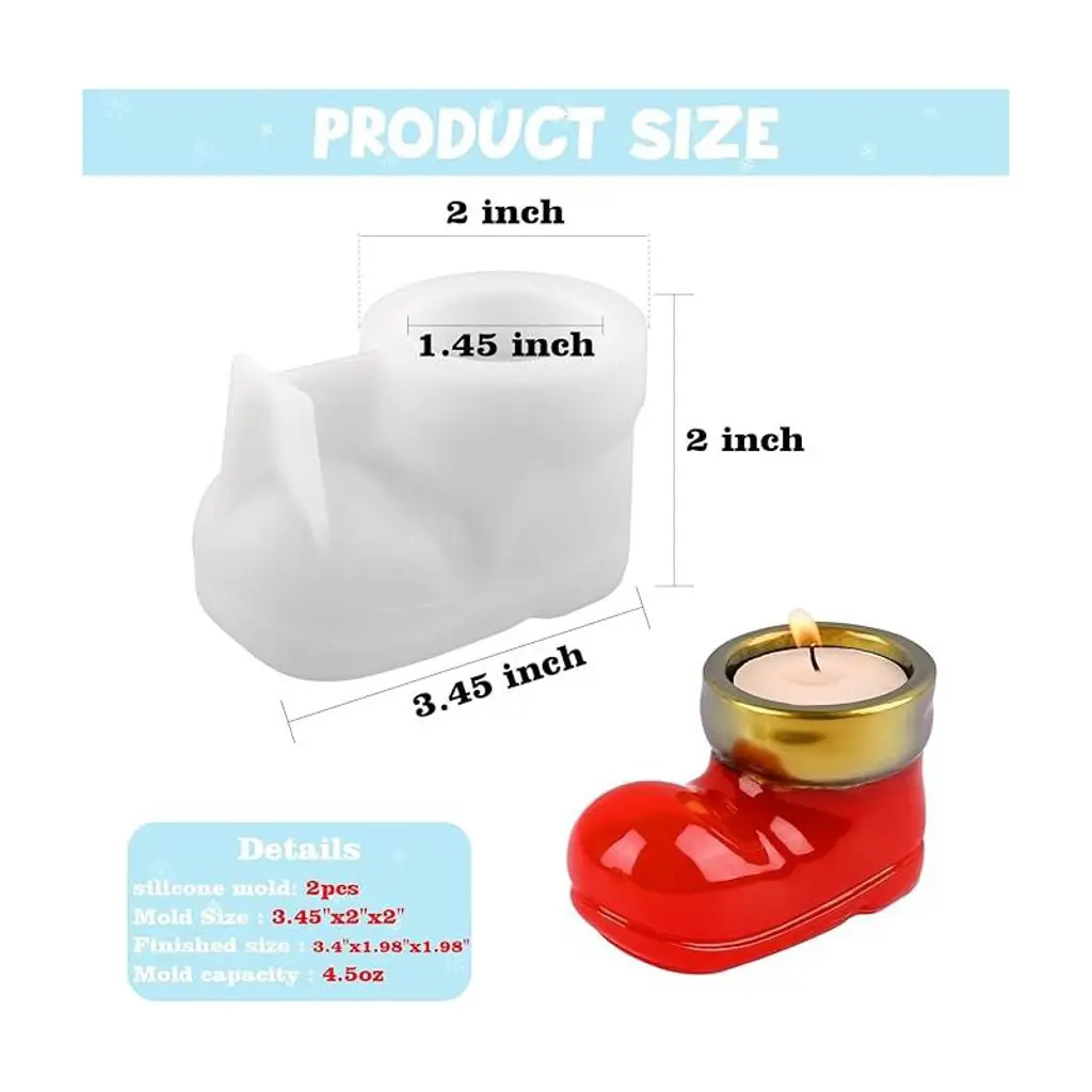 Jdiction Christmas Boot Silicone Mold Set - 2Pcs Tealight Holder For Resin Casting, Cement, Plaster Diy Craft Winter Home Decor