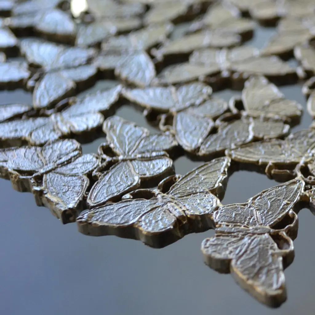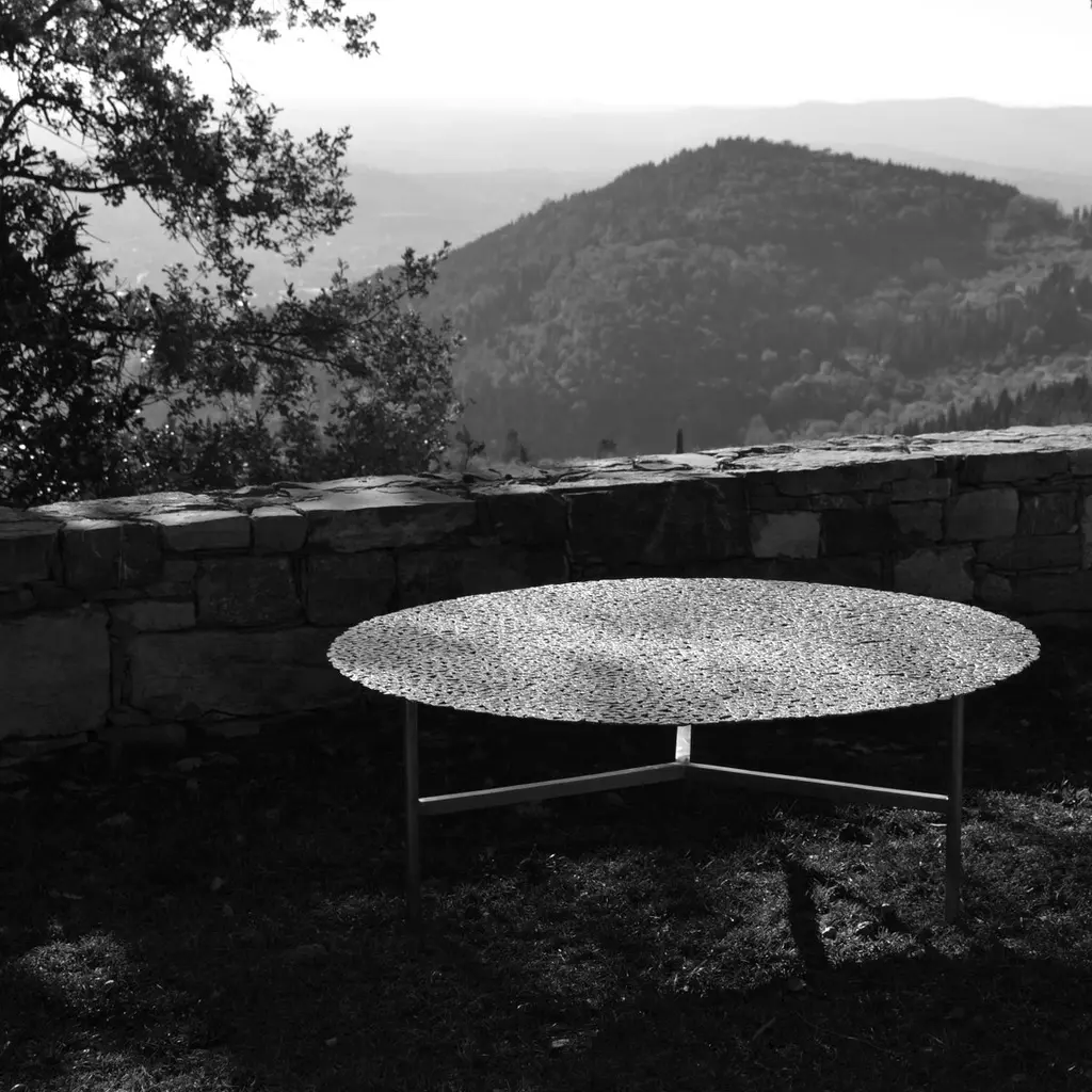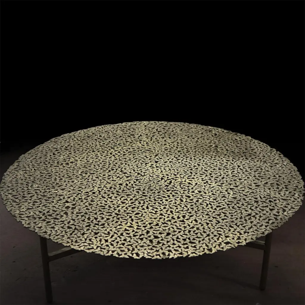Jean Bronze Round Coffee Table by Fred and JuulDimensions: Ø 120 x H 40 cm.Materials: Bronze.Also available in a black-patinated or white finish. Custom sizes, materials or finishes are available on request. Please contact us.A swarm of butterflies as delicate as a lace table cloth forms an everlasting table top in lost wax cast brass or bronze. A sculptural table for both indoor and outdoor use.Fred&Juul, short for Federico Minarelli and Julie Janssen, are two architects who decided working as architects isn’t for them. It was when designing custom furniture for their clients and developing it with the amazingly skilled local artisans that they truly found joy in their work. So, in 2012 they decided to solely focus on that and launched their first lighting and furniture collection. With the exception of the renovation of the old Tuscan farmhouse that would become their home and studio, a labor of sorrow, but mostly love (see the result on the press page!).What sets them apart is how they see and use their materials of choice: bronze, brass, wood and stone. Their designs value the inherent nature of these materials and how they are meticulously crafted, like the grainy, clouded surface of their Raffaele light in sandcast brass or the juxtaposed Oak grains in the marquetry of their Maurits table. Starring all these aspects in the story of a piece, is what makes it unique and last.Over the years they have increasingly worked with interior designers on custom pieces for high end projects all over the world, thanks to their attention for detail, refined aesthetic sense and collaboration with the best highly specialized craftsmen Tuscany has to offer.