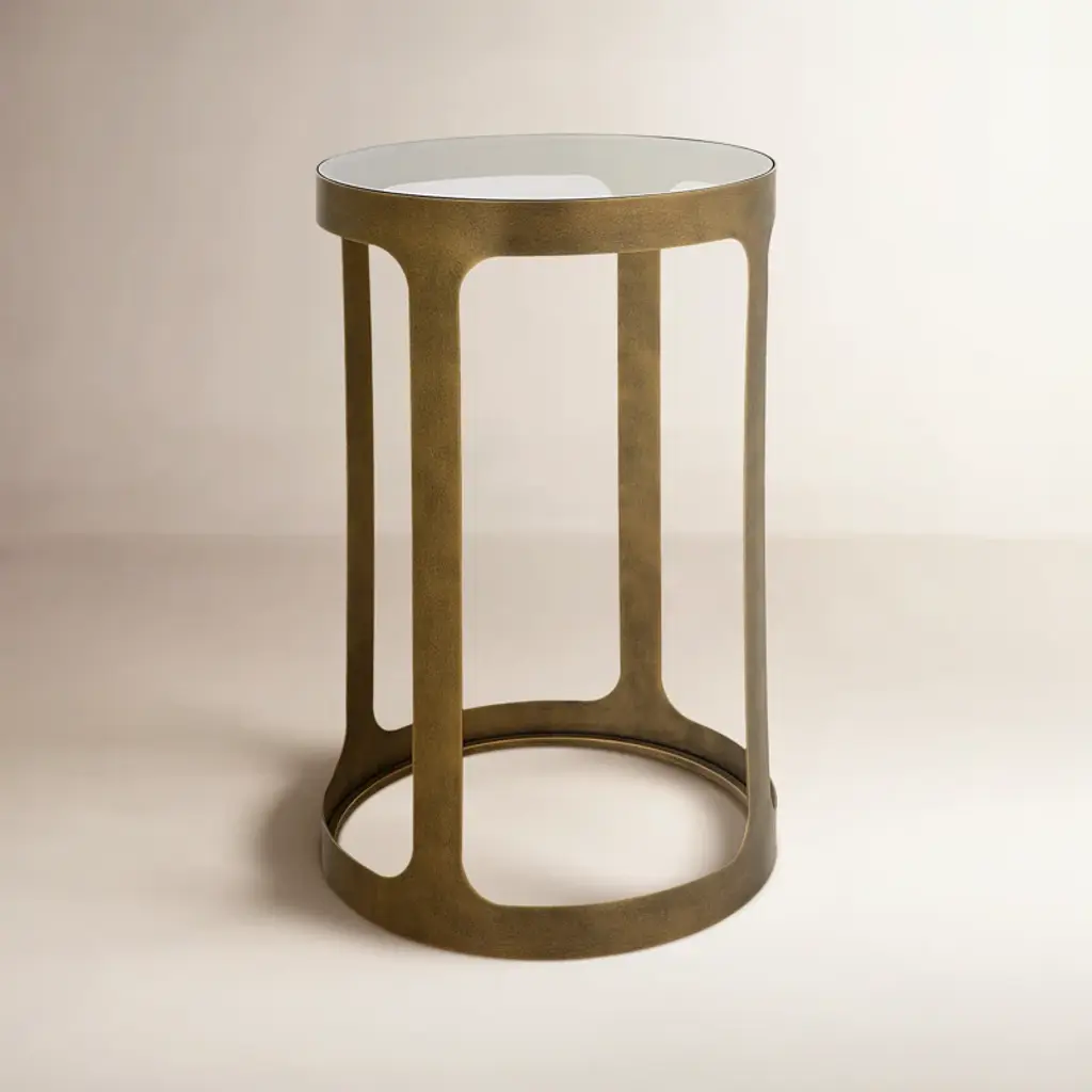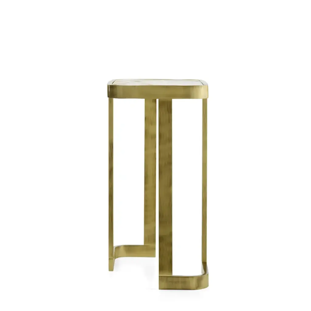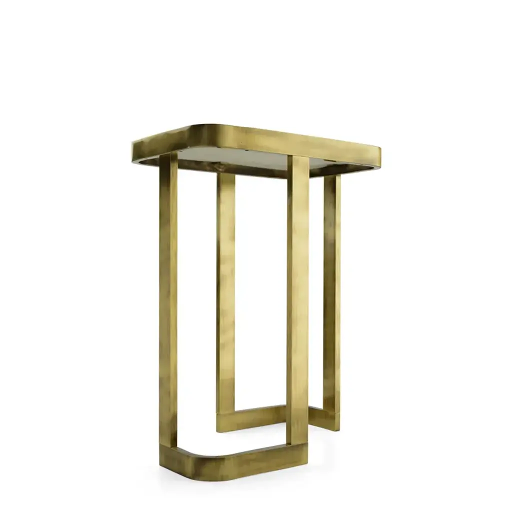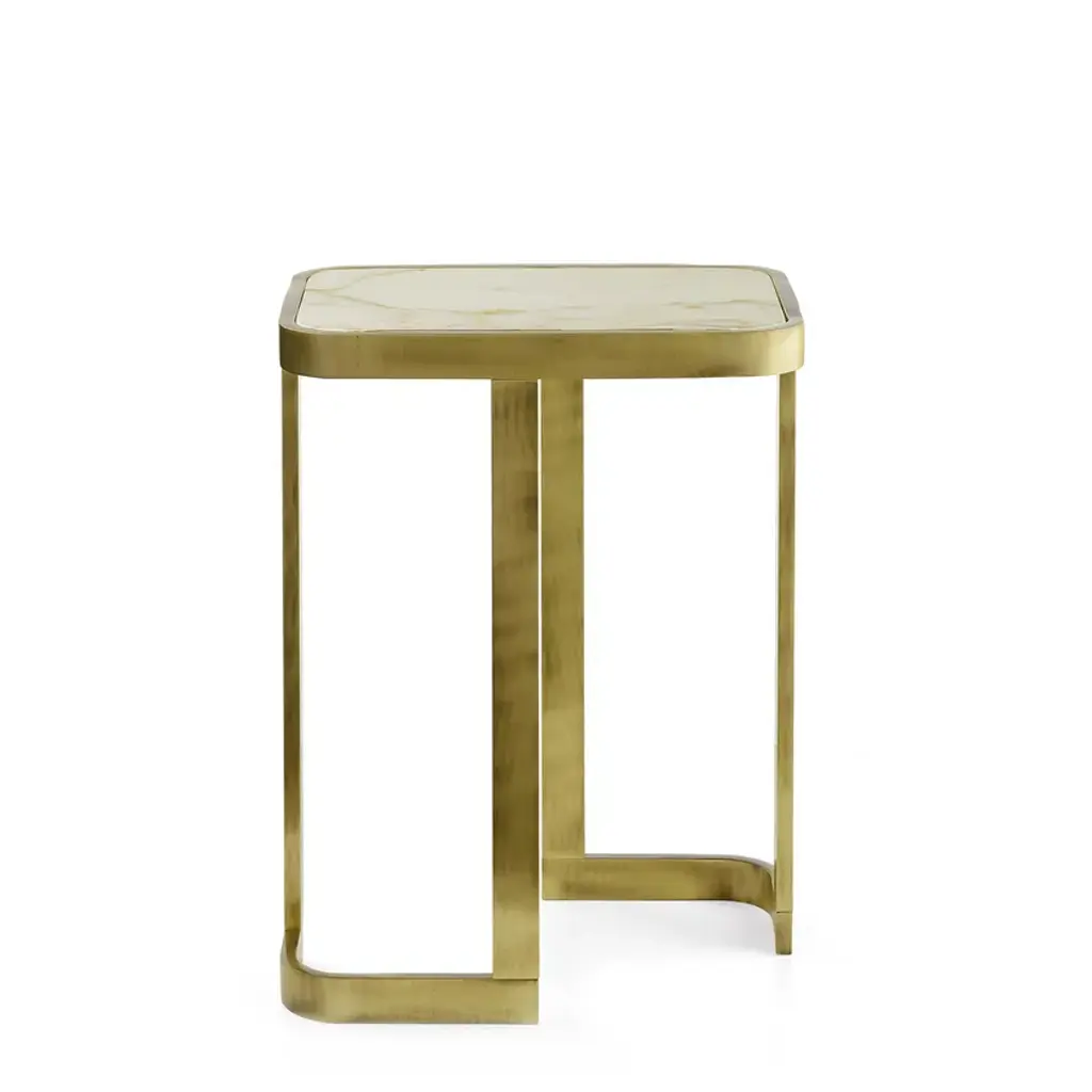 Side table in brushed metal available with different combinations of marble/ glass.Jean is a complete collection of coffee and side tables with structure in curved metal with marble or painted glass tops that will fit perfectly in any home.