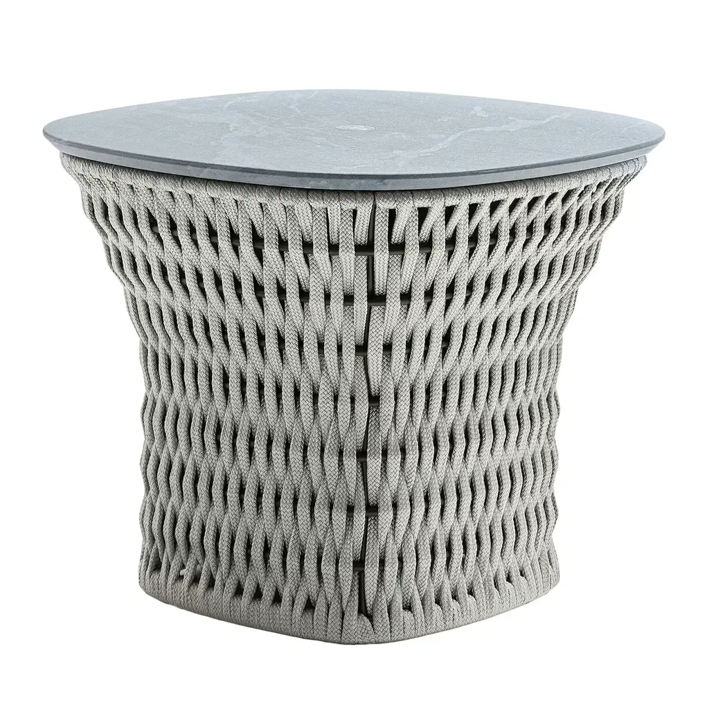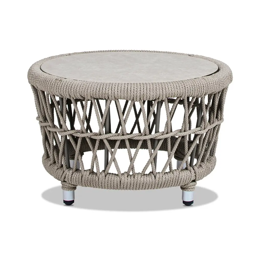 Inspired by relaxed outdoor living, the Everly 21.5" Round Patio Coffee Table by Jennifer Taylor Home brings versatile style and smart function to your space. Handwoven with durable light beige olefin rope, it frames a sturdy aluminum structure built to last. The removable, reversible tabletop offers two looks in one — sleek tempered glass on one side, and a natural stone-look finish on the other. Its compact round shape is perfect for patios, balconies, and cozy outdoor lounges. With the Everly table, effortless style and flexible design go hand-in-hand.
