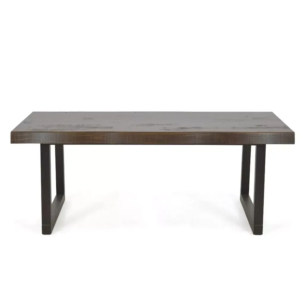 The Jennings Cocktail Table presents a rustic modern style in a two-tone finish that warms up any room. Sturdily constructed with a solid pine top with a live edge in a rustic, distressed cherry finish and a solid pine ebony finished base. Also available in this collection is the matching end table (purchase separately). Your purchase includes one Cocktail Table.