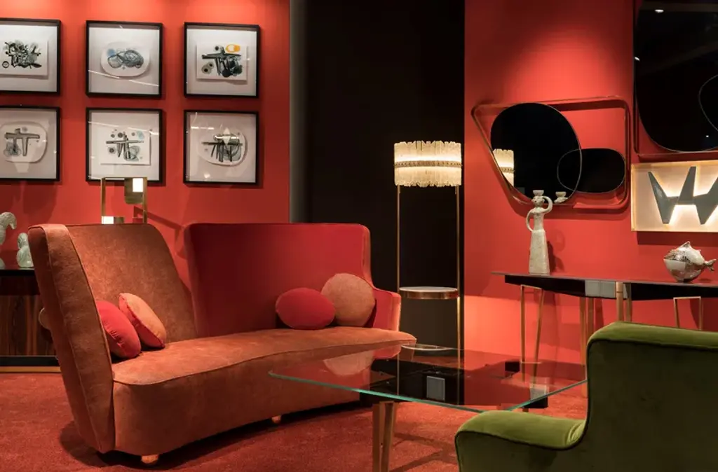 Joe square coffee table in lacquered wood and glazed ceramic inserts. Brass structure and extra-clear glass top with rounded corners.