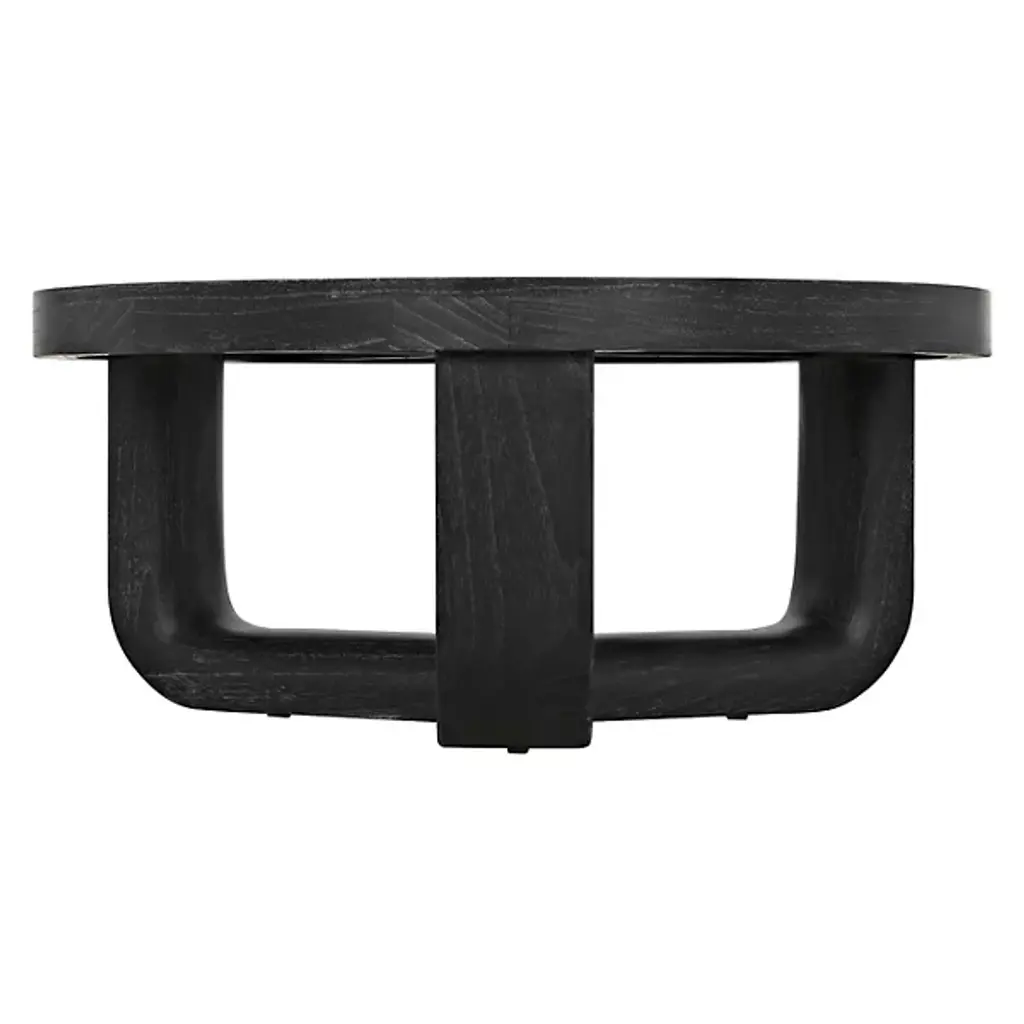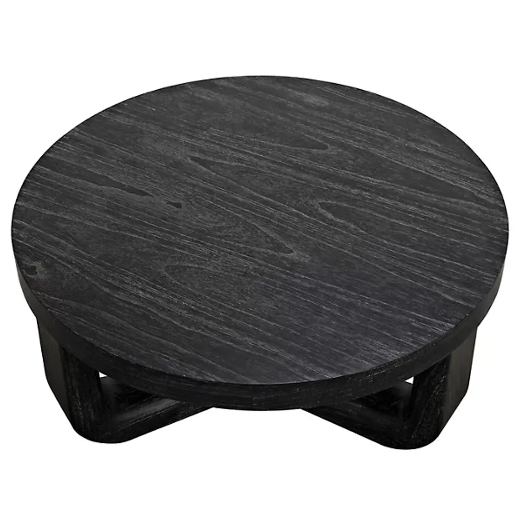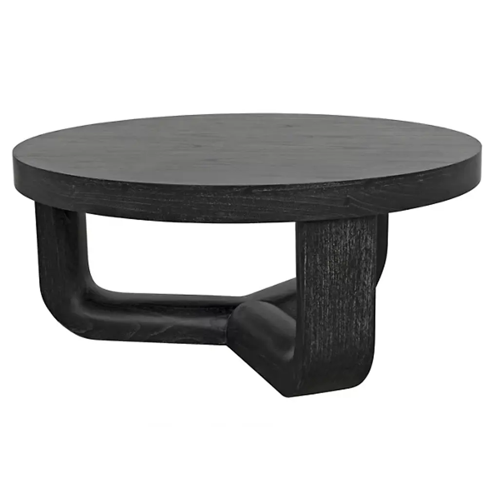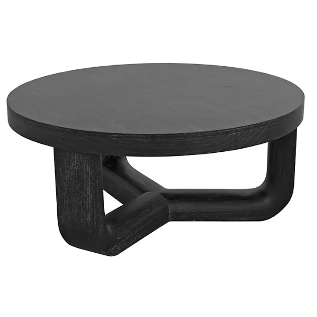 Unique woodgrain patterns shine through hand-rubbed finishes in the artisanal Joel Coffee Table by Noir. Three conjoining legs support the round occasional table, their intersecting base amplifying depth within the mahogany material. Simple and unfettered, the open design celebrates the inherent beauty of organic woodgrain, embedding mystery that emerges from the wood’s swirling surface and stands out proudly beside the seating.