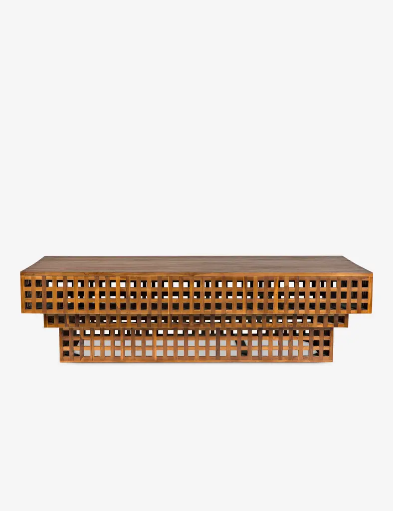 The Joffe coffee table features a stacked box silhouette crafted from teak to create a chic open grid pattern that brings texture and depth to your space. A clear coat finish allows the warmth of the wood and the coffee table's design detail to take center stage.