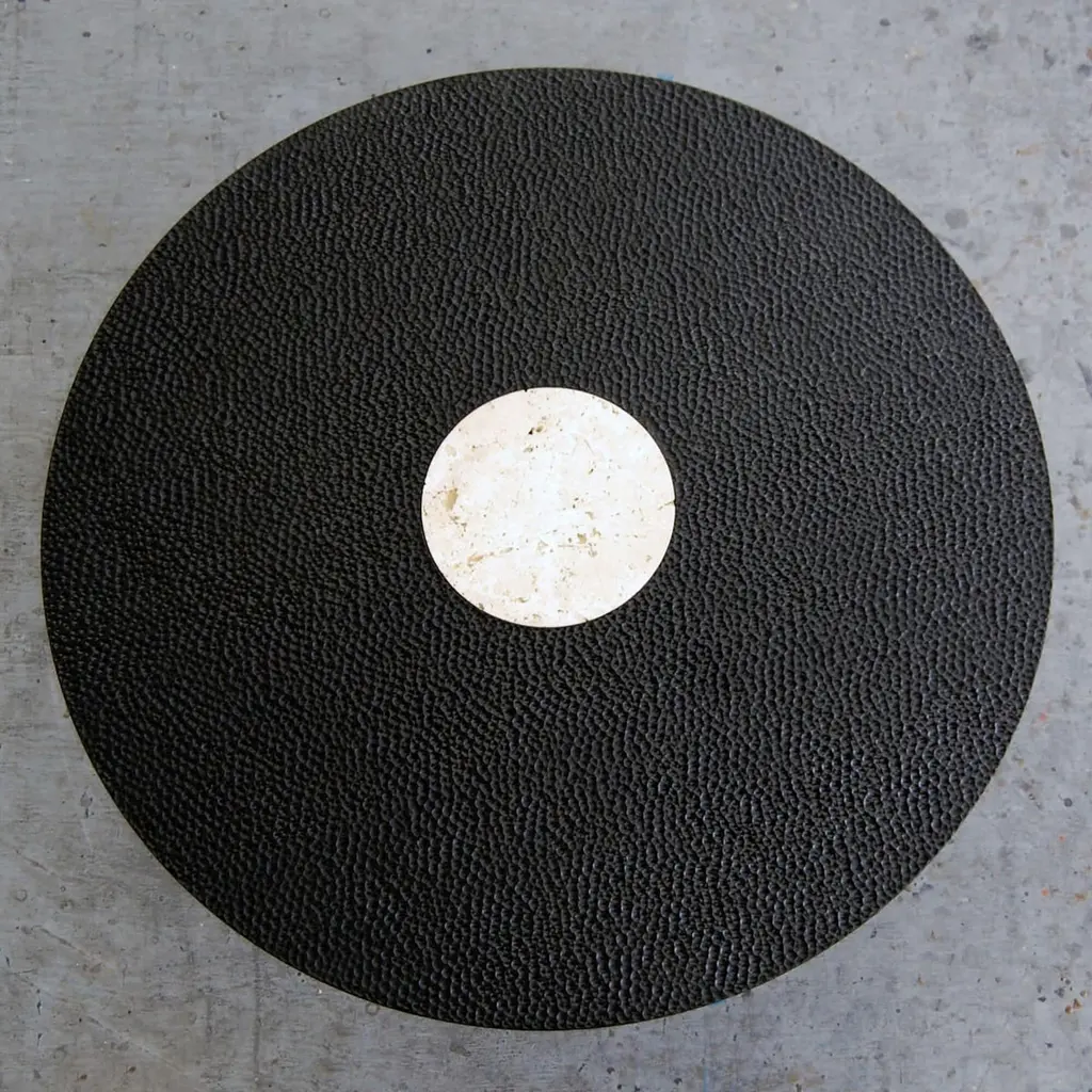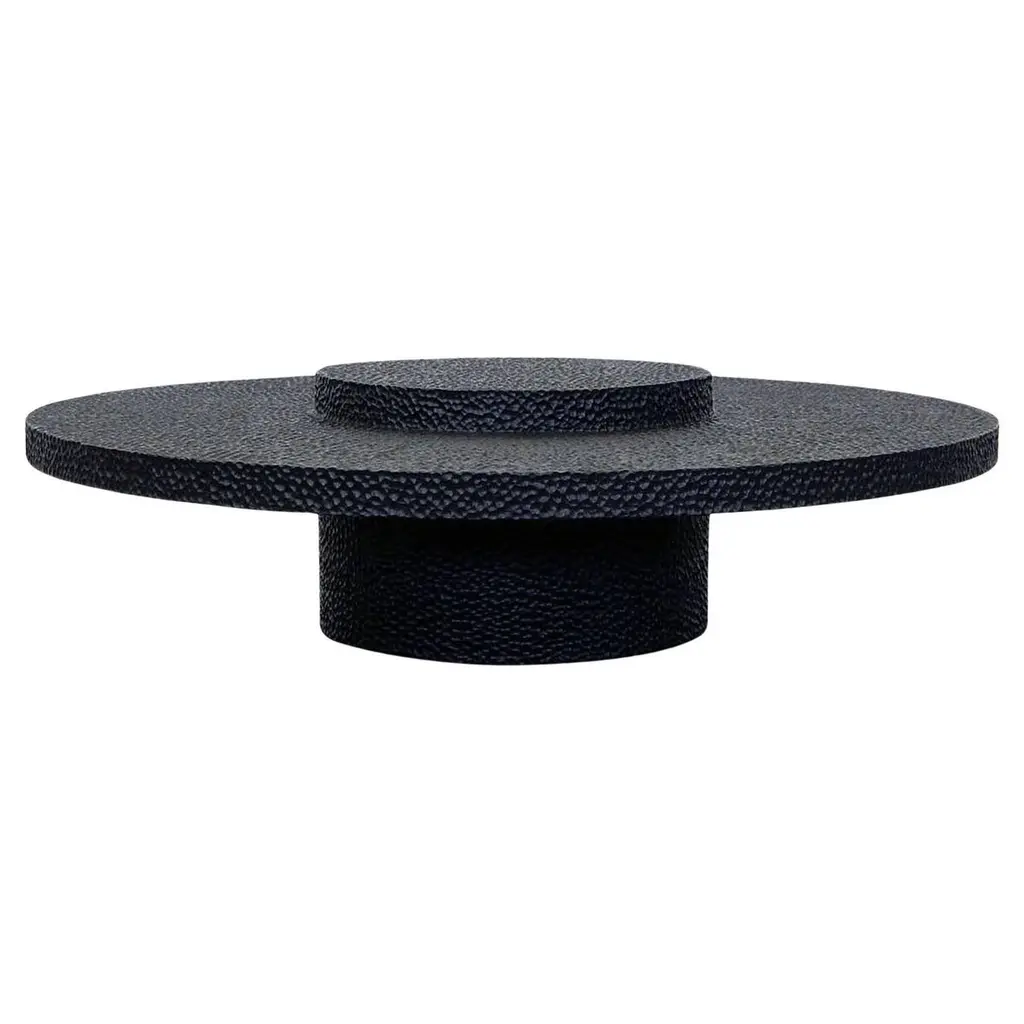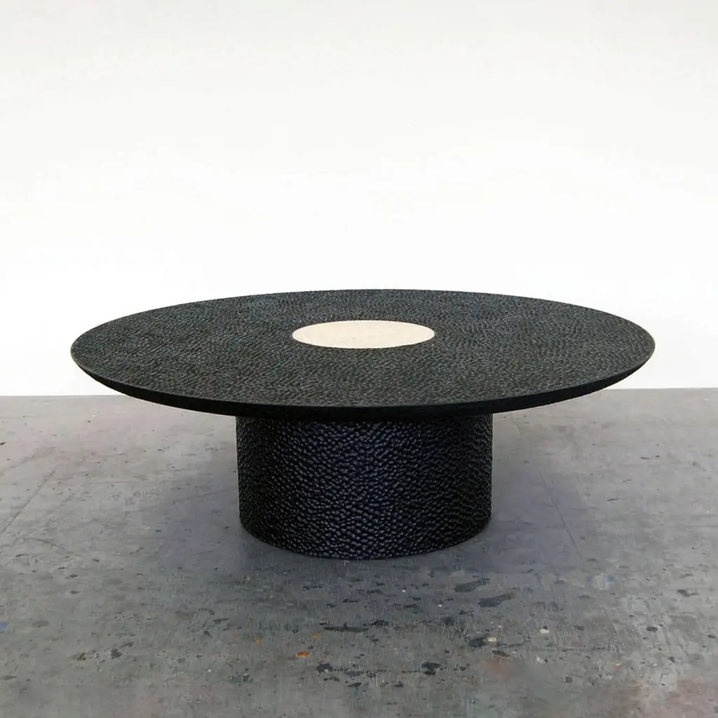 This round low table from John Eric Byers merges modern, simplified geometries with traditional craft. The solid maple is painstakingly hand-carved and lacquered with a distinctive textured pattern, with a travertine centerpiece inspired by the moon's surface.John Eric Byers is an artist/designer/craftsman who works exclusively with wood. The wood medium to Byers is like clay to a potter; he transforms the material through exceptional care and thoroughness, hand-tooling the surface and creating something completely unique. His works succeed due to somewhat of a contradiction. While the forms are strikingly geometric and minimal, they are contrasted with the superb craftsmanship and intricacy he brings to the material's outer surface. As noted by Grace Glueck in the New York Times, "The carved, patterned surfaces add considerable interest to his simplified forms, as does his exquisite attention to detail." A former student of Wendell Castle, John's work is guided by purity of form, structure, and surface texture, as well as a great respect for the materials he works with.John Eric Byers is an American artist with works in the permanent collections of the Museum of Arts and Design in New York and the Smithsonian American Art Museum in Washington, D.C. Numerous awards include the Louis Comfort Tiffany Foundation Award and inclusion in the Smithsonian's Archives of American Arts.John Eric Byers, "V4", Cabinet.