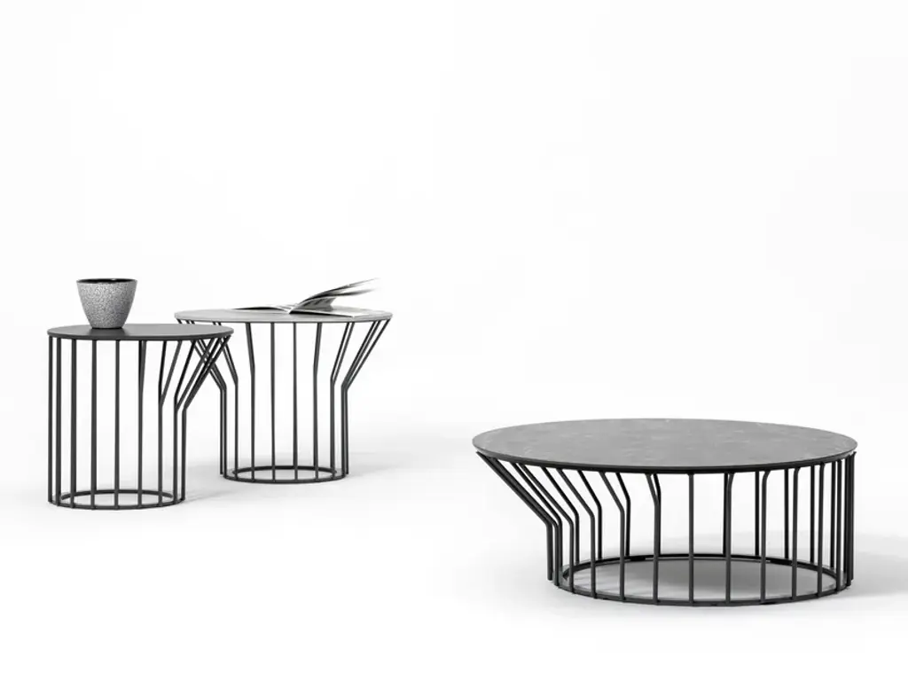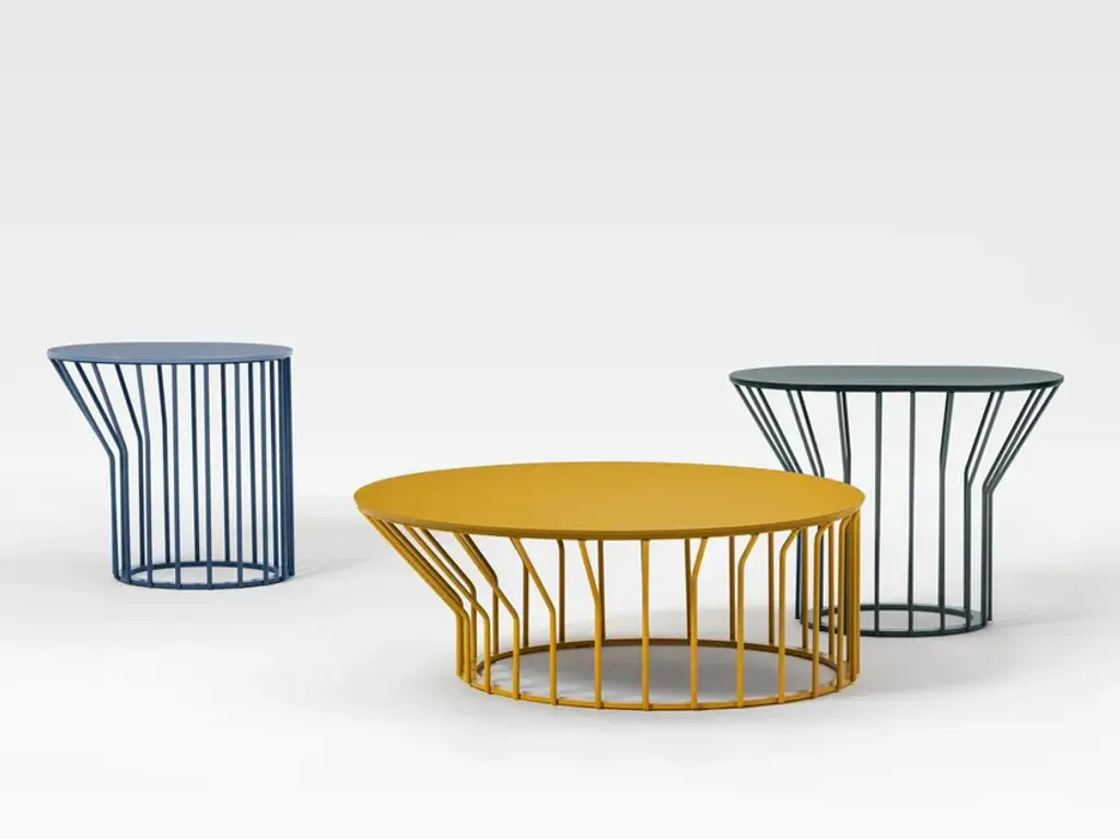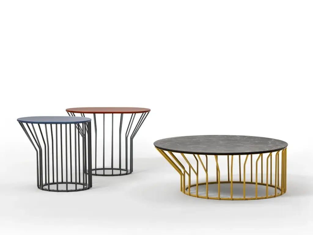 The JUMP coffee table collection is characterized by the originality of the base, which creates a particular design. Play of colors with HPL, marble or glass ceramic tops make it unique in its kind. Version also for outdoor.Low table with painted metal structure and HPL or glass ceramic top, for indoor or outdoor-