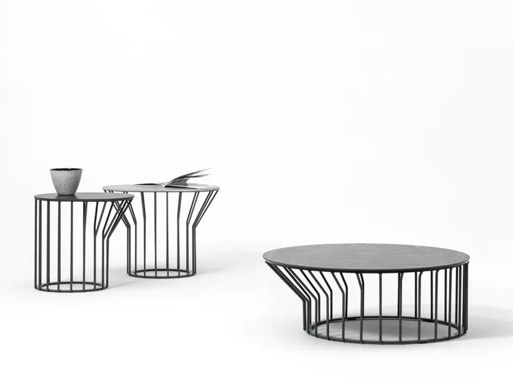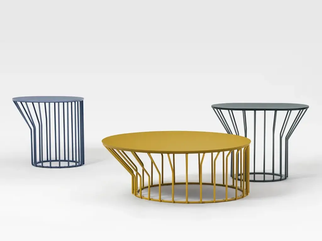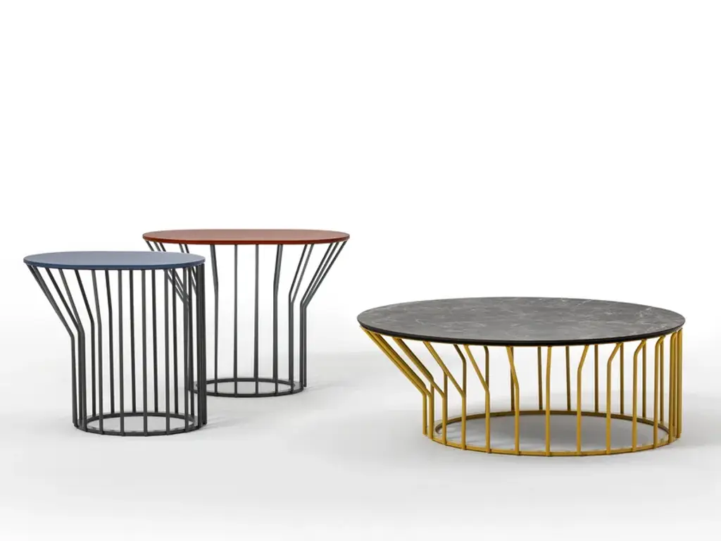 The JUMP coffee table collection is characterized by the originality of the base, which creates a particular design. Play of colors with HPL, marble or glass ceramic tops make it unique in its kind. Version also for outdoor.Low table with painted metal structure and HPL or glass ceramic top, for indoor or outdoor-