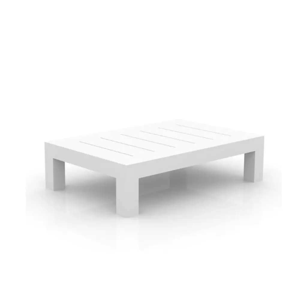 Showcasing artistic contrast, bold rectilinear shapes make up the minimalistic design of this large Jut Table 120. Clean, sharp lines and angles give the piece a chic contemporary charm, perfect for living and entertaining areas. The coffee table's low profile brings a more relaxed feel to the ambiance and an unobtrusive view of family and friends, encouraging conversations to flow freely. In addition, it's low enough to slip under higher coffee tables too. The impact-resistant polyethylene material composition is weatherproof and suitable for commercial use as well. While contributing to style, long perforations across the tabletop facilitate the spontaneous seepage of rainwater to keep the furniture dry. The Jut Table 120 is available in a range of vibrant colors and two finishes.