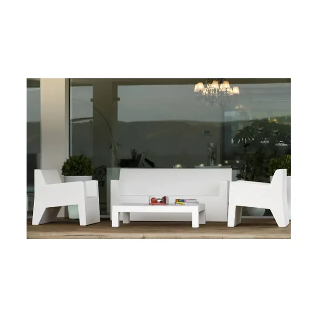 Showcasing artistic contrast, bold rectilinear shapes make up the minimalistic design of this large Jut Table 120. Clean, sharp lines and angles give the piece a chic contemporary charm, perfect for living and entertaining areas. The coffee table's low profile brings a more relaxed feel to the ambiance and an unobtrusive view of family and friends, encouraging conversations to flow freely. In addition, it's low enough to slip under higher coffee tables too. The impact-resistant polyethylene material composition is weatherproof and suitable for commercial use as well. While contributing to style, long perforations across the tabletop facilitate the spontaneous seepage of rainwater to keep the furniture dry. The Jut Table 120 is available in a range of vibrant colors and two finishes.