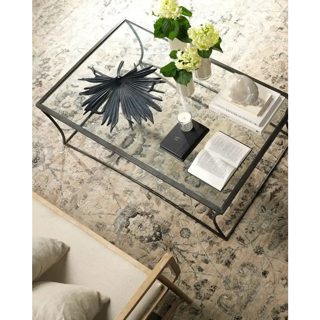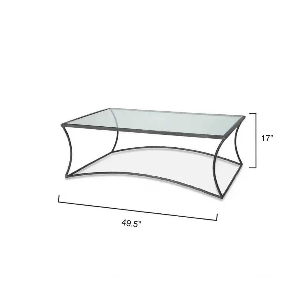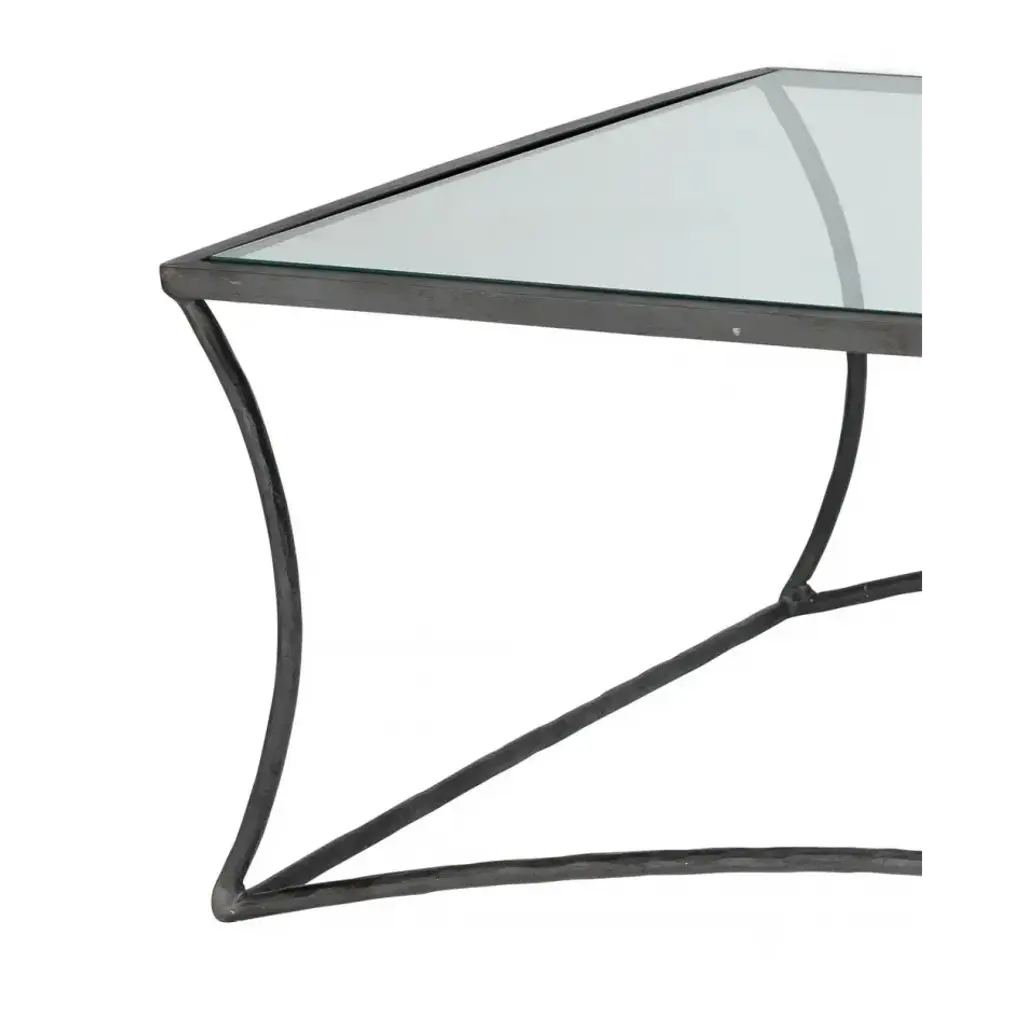 Unexpectedly combining grace and strength, this table features dynamically swooped hand-forged legs finished in black and topped with clear tempered glass top. Perfect for showcasing collectibles or displaying your favorite books.