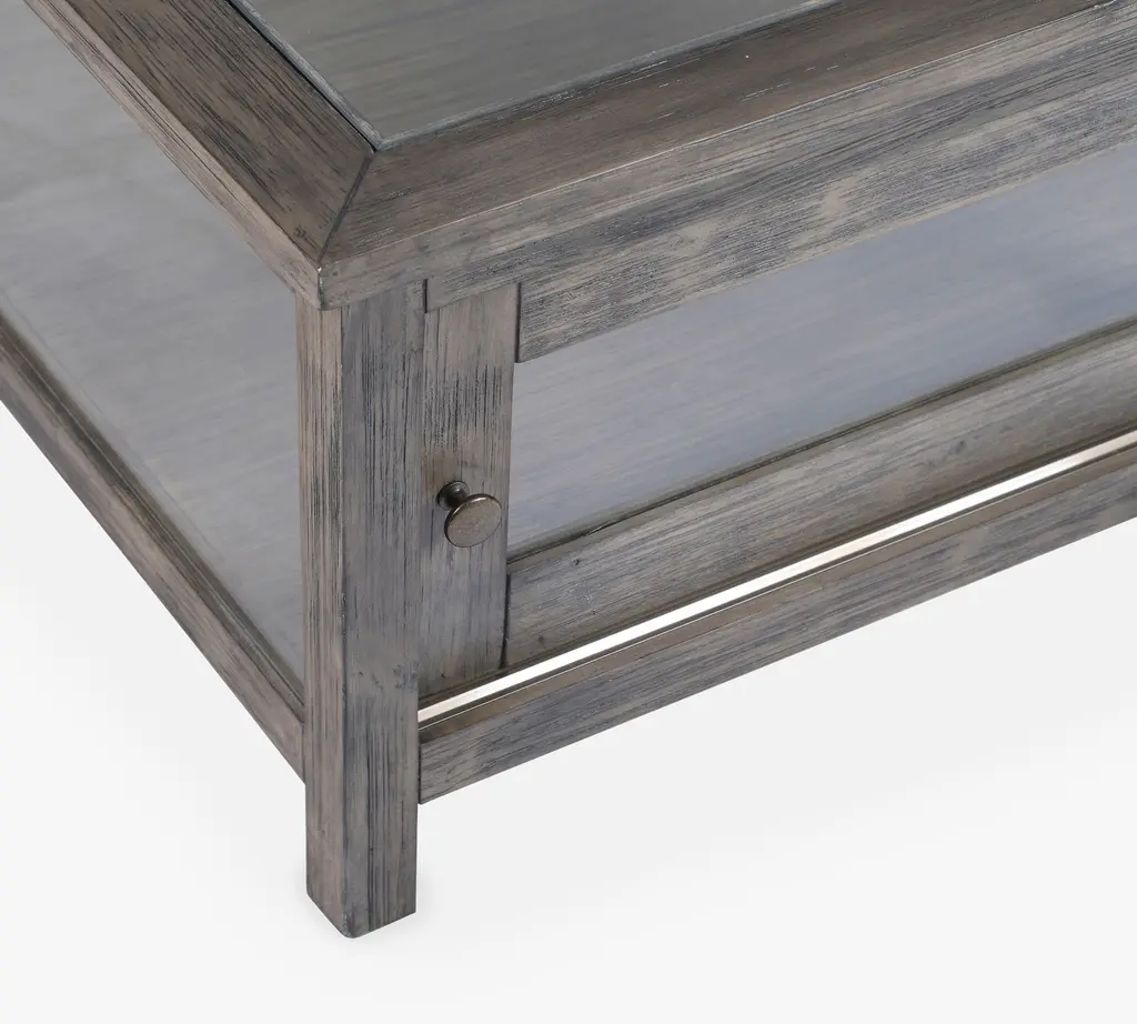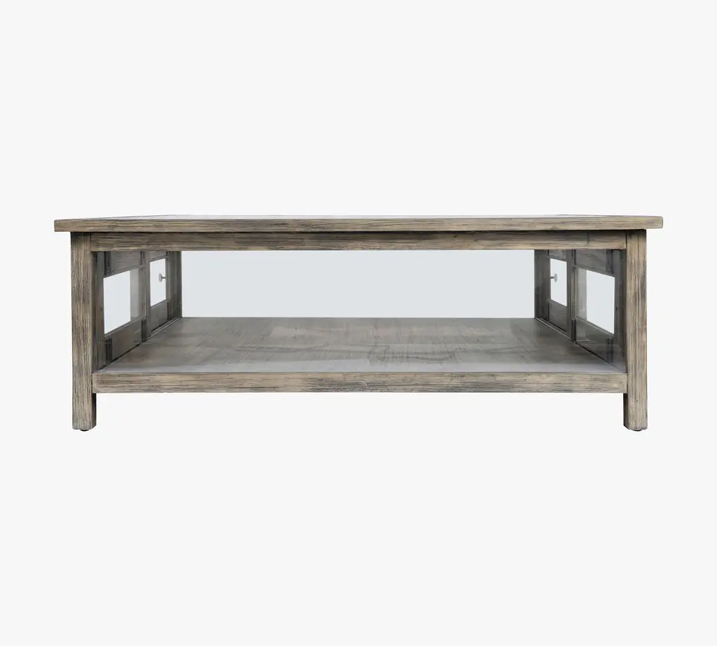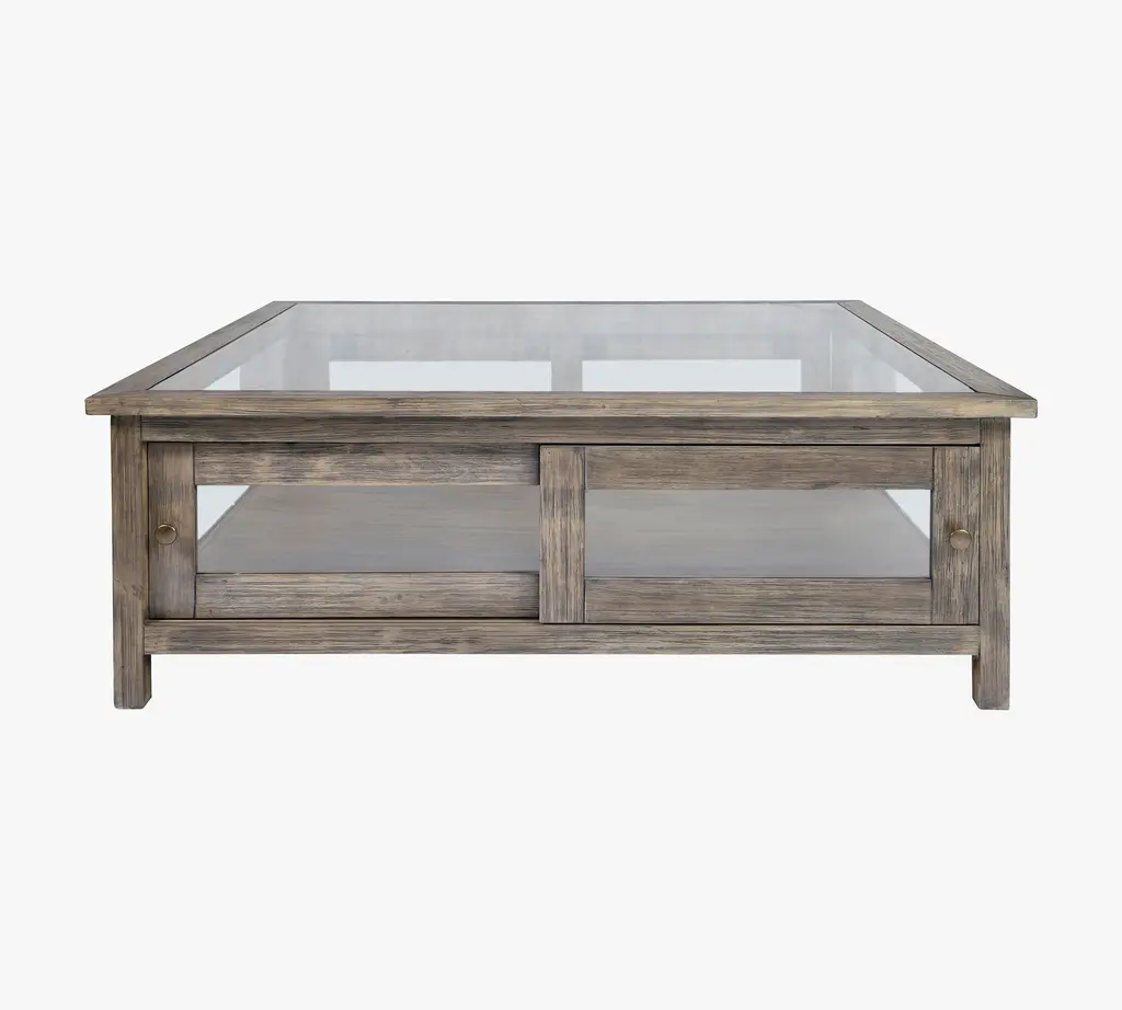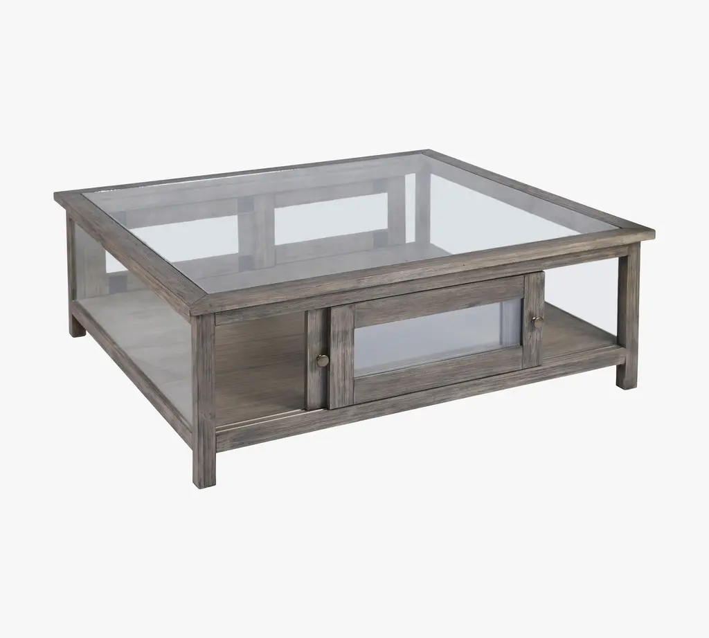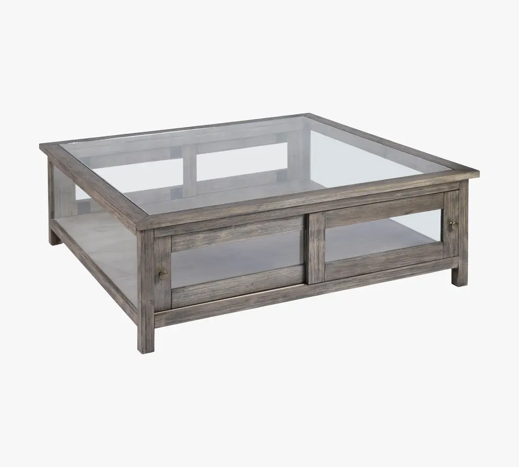 Expertly crafted of durable acacia and glass, this coffee tables feels both sturdy and airy. The generous surface area lets you kick up your feet in comfort, and sliding doors on both sides of the table are perfect for storing quilts, art books, or any decor you want to display.