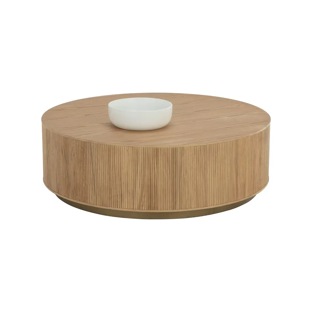 Elevate your living space with the Kalla Coffee Table. Crafted with rustic oak wood and oak veneer, this coffee table features vertical reeding and a brushed gold steel base for a pleasant contrast. Each piece is unique, showcasing natural variations in texture, color, and grain. Its character and sophistication make it a must-have for any luxurious setting. Highlights