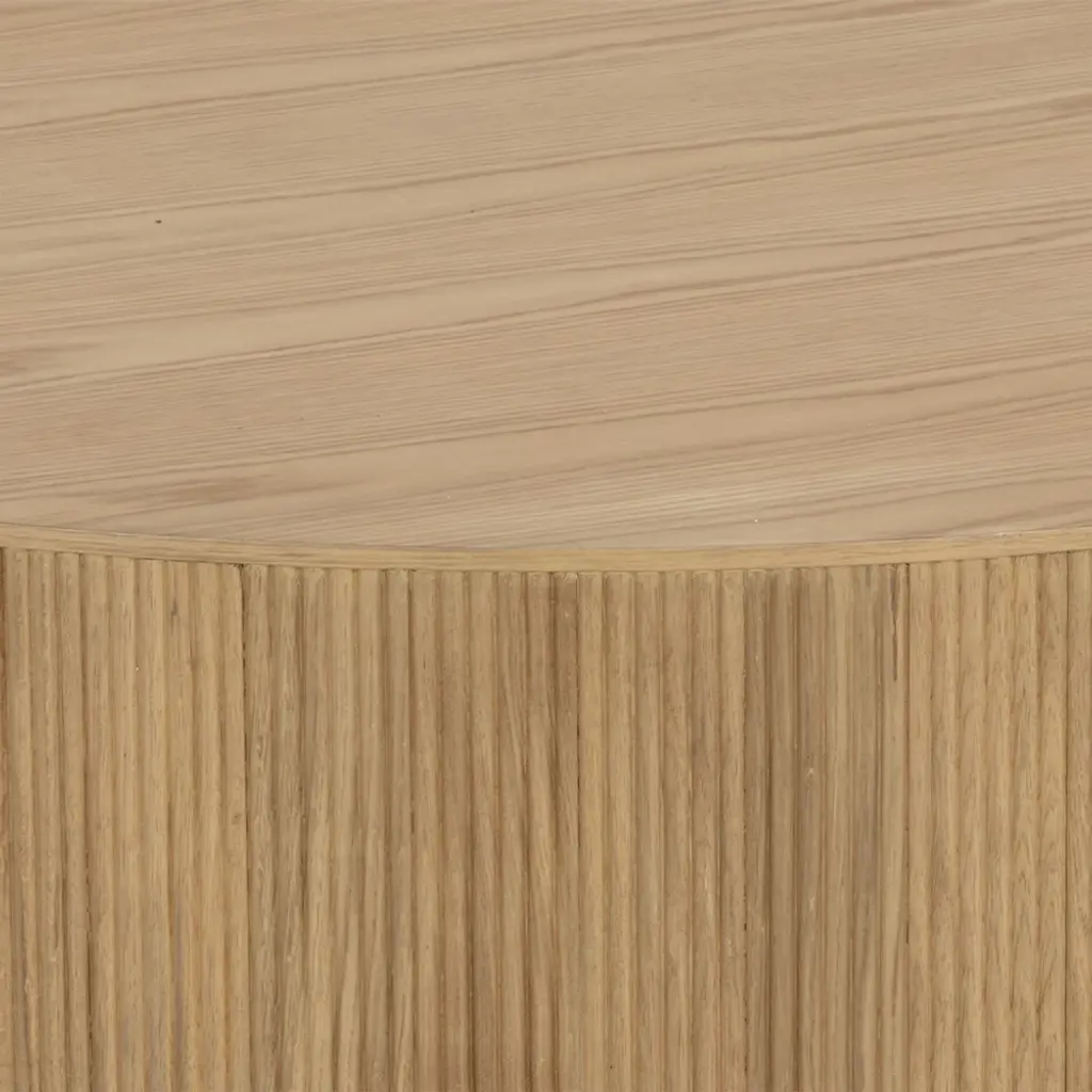 Elevate your living space with the Kalla Coffee Table. Crafted with rustic oak wood and oak veneer, this coffee table features vertical reeding and a brushed gold steel base for a pleasant contrast. Each piece is unique, showcasing natural variations in texture, color, and grain. Its character and sophistication make it a must-have for any luxurious setting. Highlights