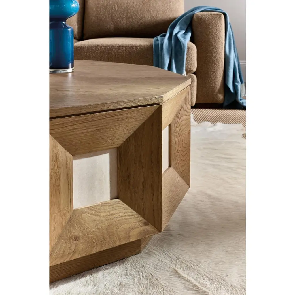 Kara Modern Classic Brown Oak Geometric Round Coffee Table